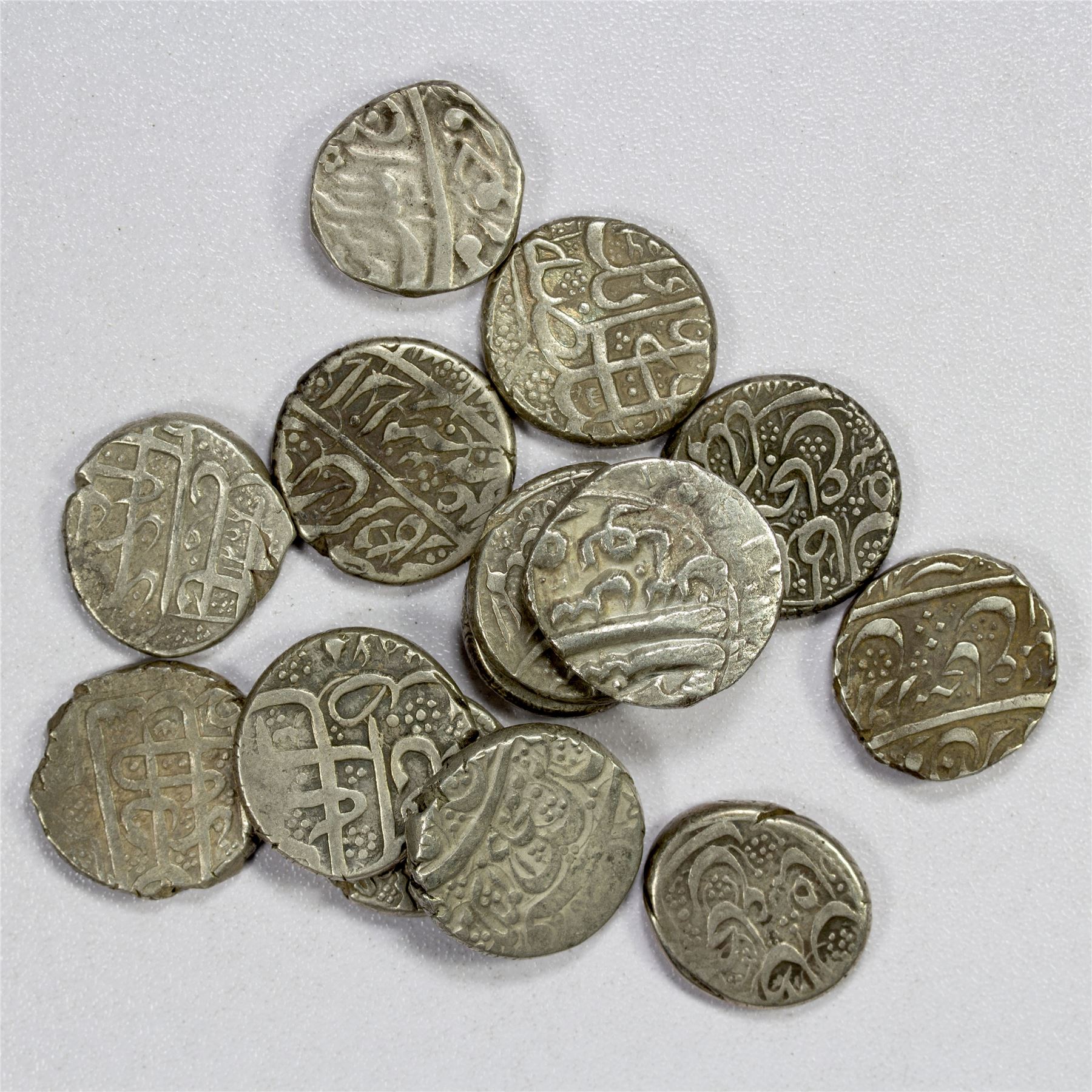 DURRANI: Shah Shuja', 2nd & 5th reigns, LOT of 14 silver rupees, mints of Ahmadshahi (2 pcs), Kabul (8), Bhakhar (1), Derajat (1), and Peshawar (1); nice group, nearly all in attractive VF condition); retail value $350, lot of 14 pieces.