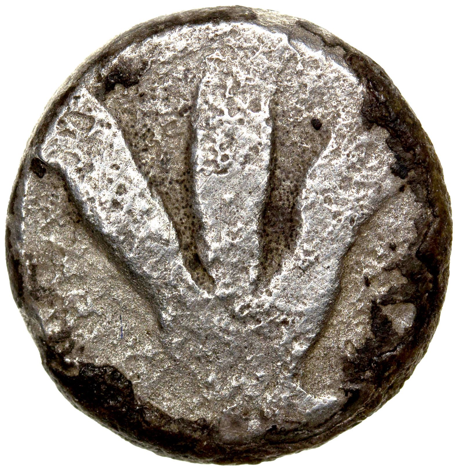 EARLY SCYTHIAN (DAHAE): Anonymous, ca. 1st century BC, AR drachm (3.78g), three thick lines, perhaps representing three grain ears, attribution to Dahae likely as this piece was found together with the others in this auction and similarly uniface, VF, RR.