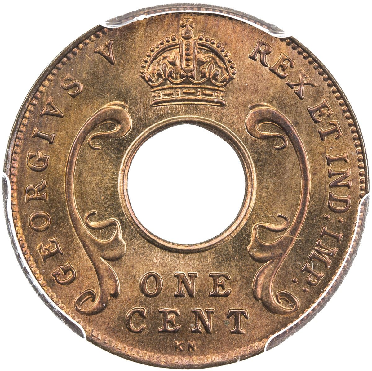 EAST AFRICA: George V, 1910-1936, AE cent, 1928-KN, KM-22, Y-20, only 11 examples known, PCGS graded Specimen-66RB, ex King's Norton Mint Collection. Tied with finest known for date!