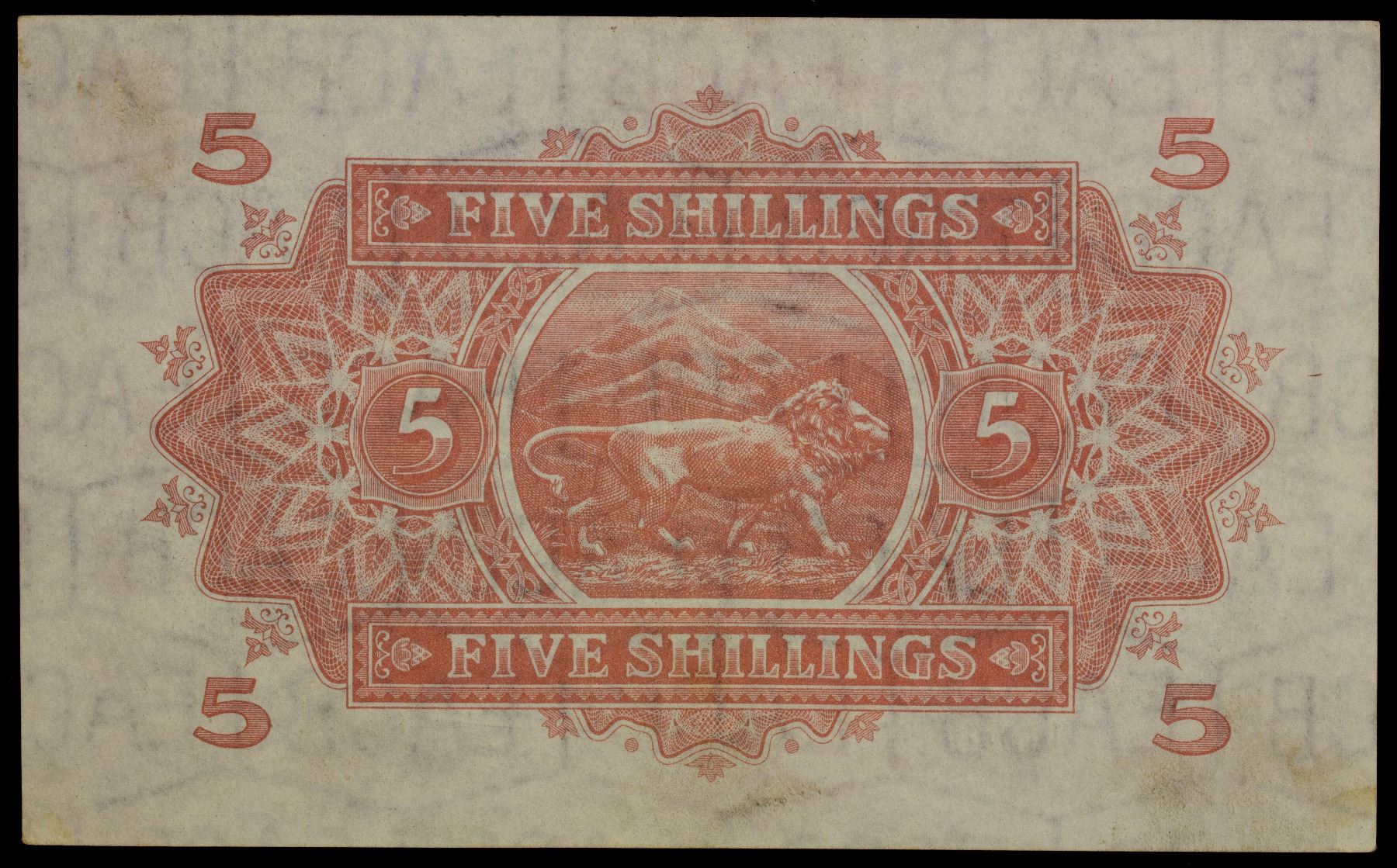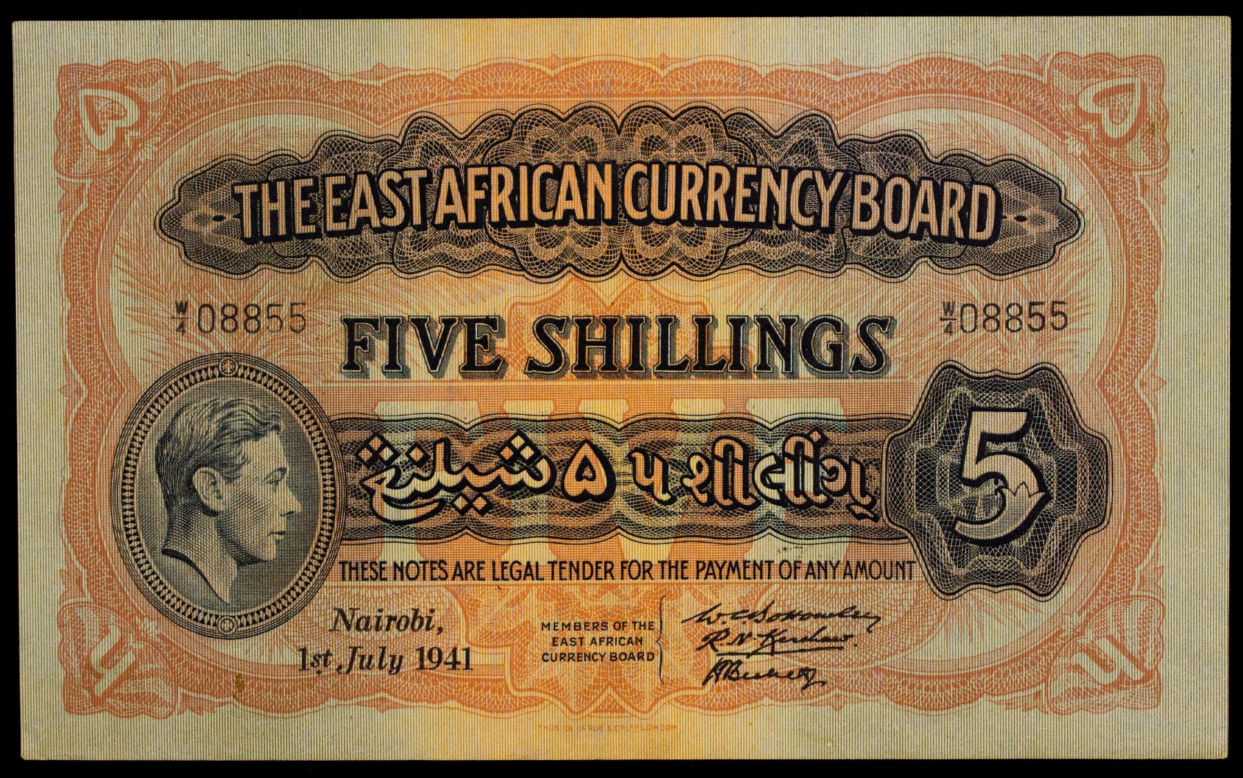 EAST AFRICA: George VI, 1936-1952, 5 shillings, 1.7.1941, Pick-28A, Nairobi, The East African Currency Board, no folds, just a few rounded corners, Choice AU.
