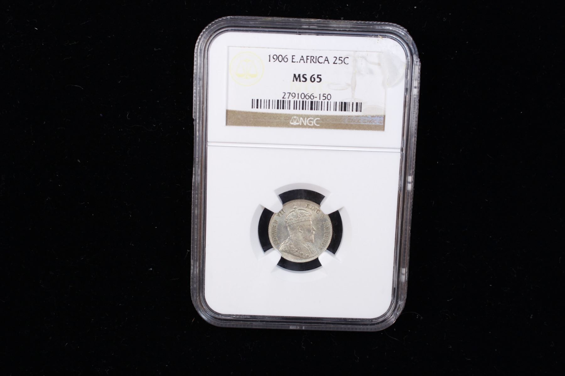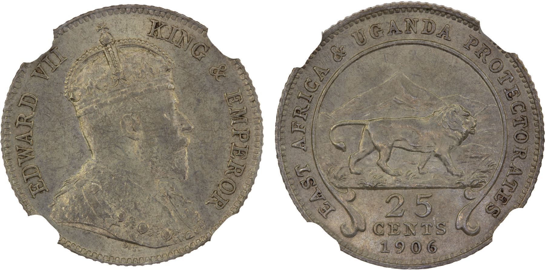EAST AFRICA & UGANDA: Edward VII, 1901-1910, AR 25 cents, 1906, NGC MS65