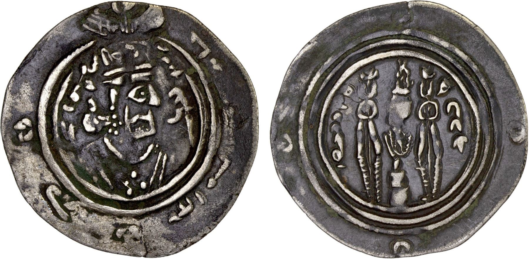 EASTERN SISTAN: Anonymous, ca. 706-723, AR drachm (3.70g), SK (Sijistan), A-79E, Malek-1102, with added Arabic word ja'iz in the first quadrant of the obverse margin, with crudely engraved date interpreted by Malek as 101, VF-XF, RR.