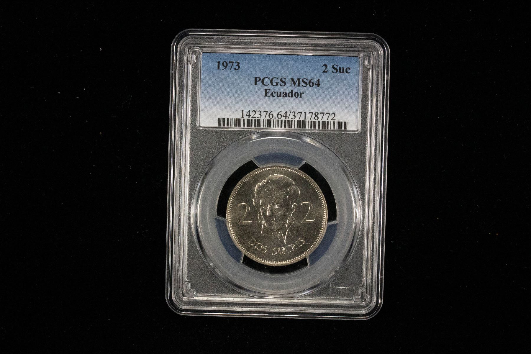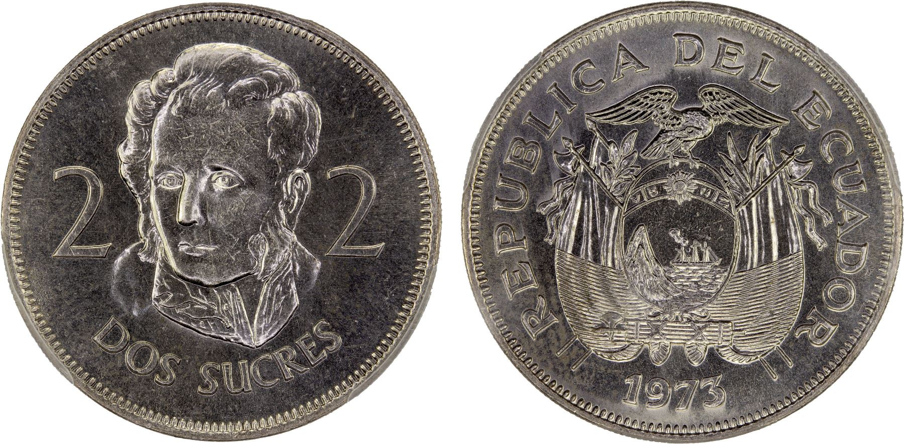 ECUADOR: Republic, 2 sucres, 1973, KM-82, type not released to circulation, one-year type, PCGS graded MS64.