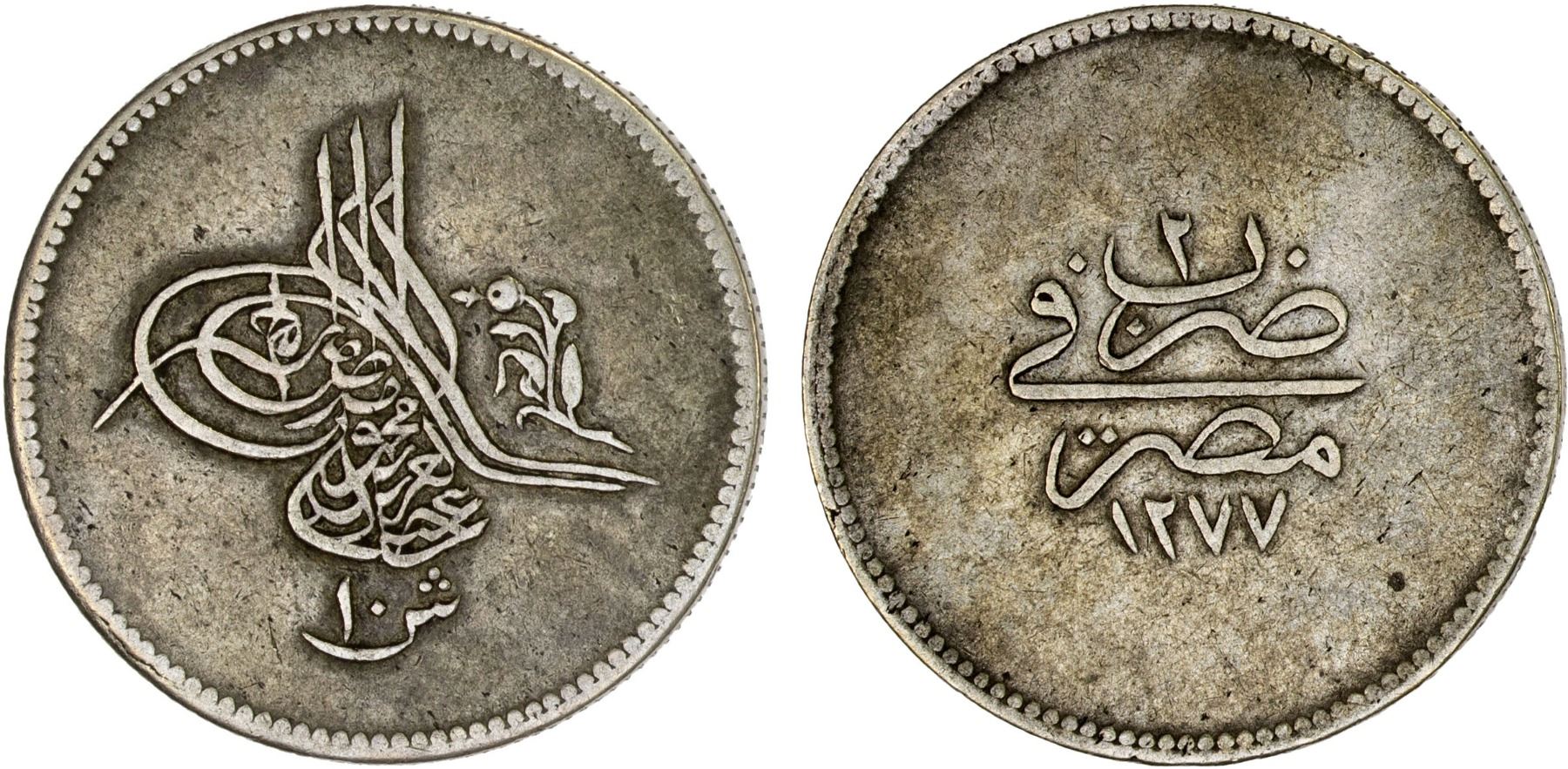 EGYPT: Abdul Aziz, 1861-1876, AR 10 qirsh (13.80g), Misr, AH1277 year 2, VF