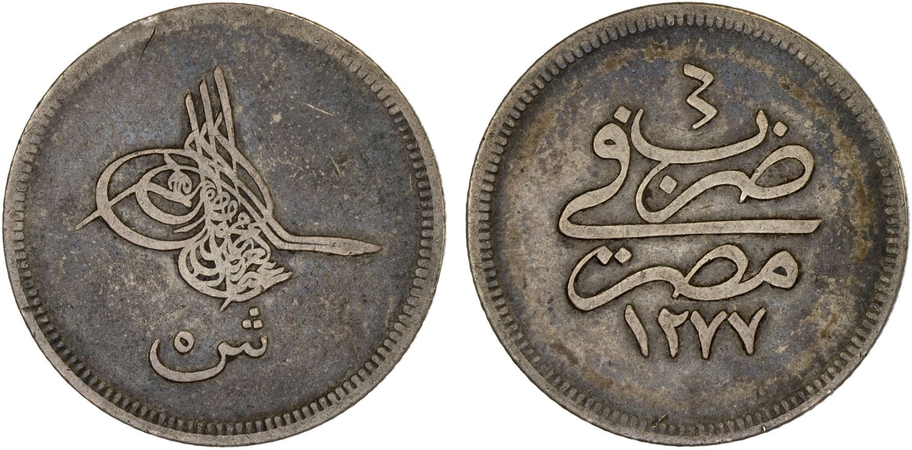 EGYPT: Abdul Aziz, 1861-1876, AR 5 qirsh, Misr, AH1277 year 4, nearly VF