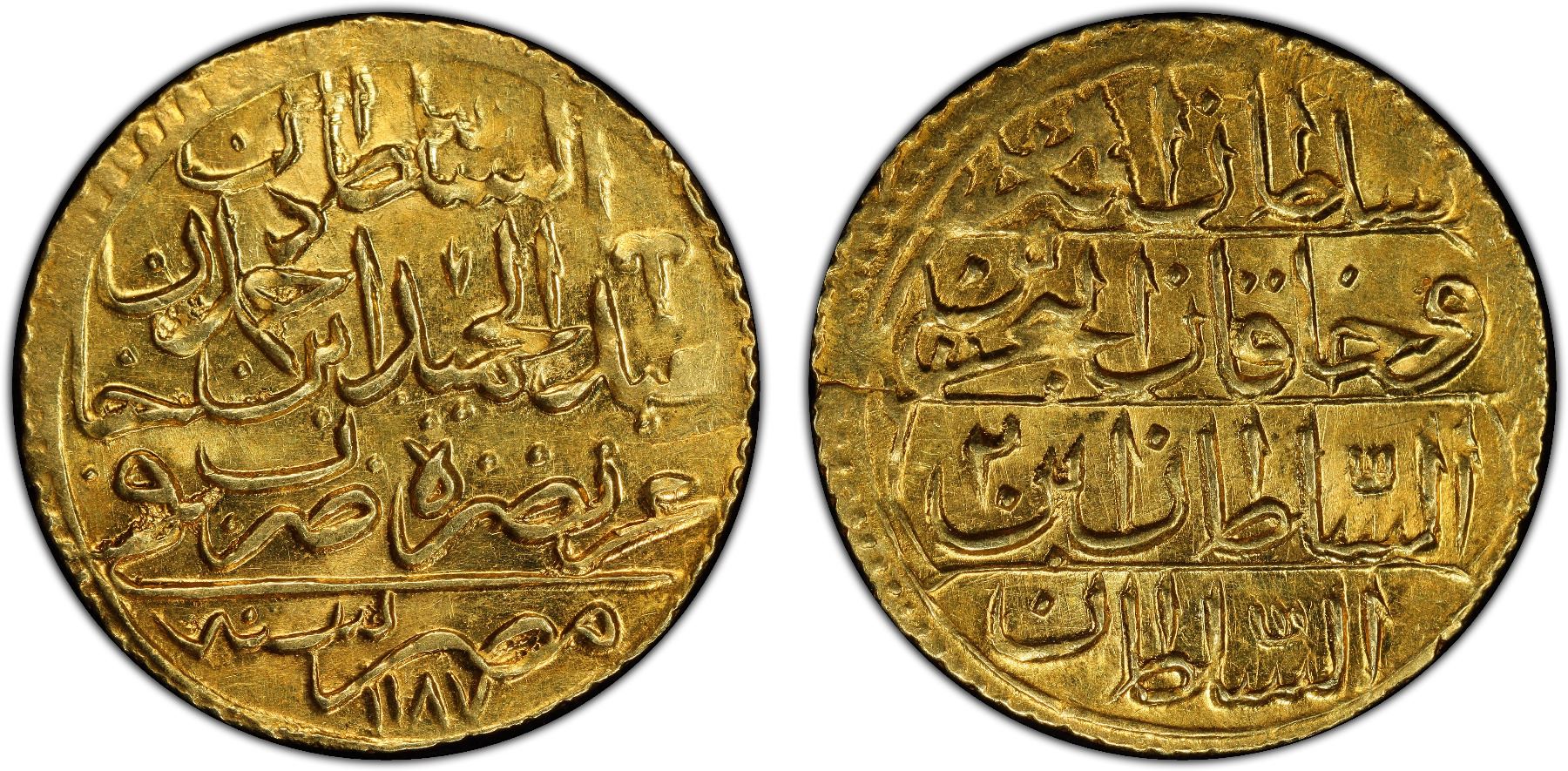 EGYPT: Abdul Hamid I, 1774-1789, AV zeri mahbub (2.60g), Misr, AH[119]2, KM-127, with accessional date of AH1187, a wonderful mint state example! PCGS graded MS64.