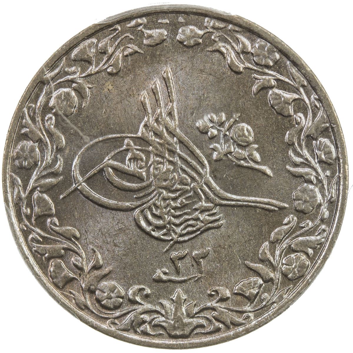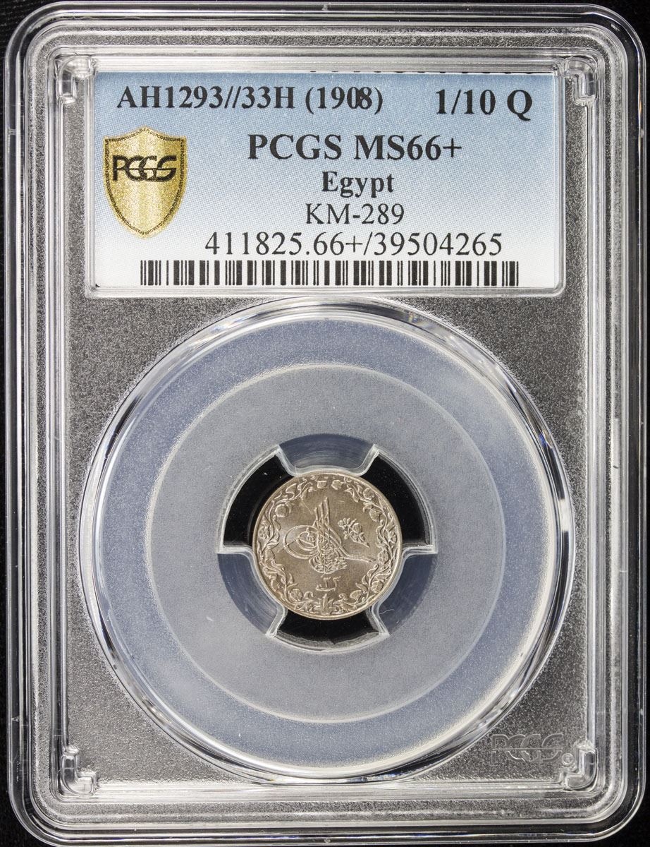 EGYPT: Abdul Hamid II, 1876-1909, 1/10 qirsh, Misr, AH1293 year 33. PCGS MS66