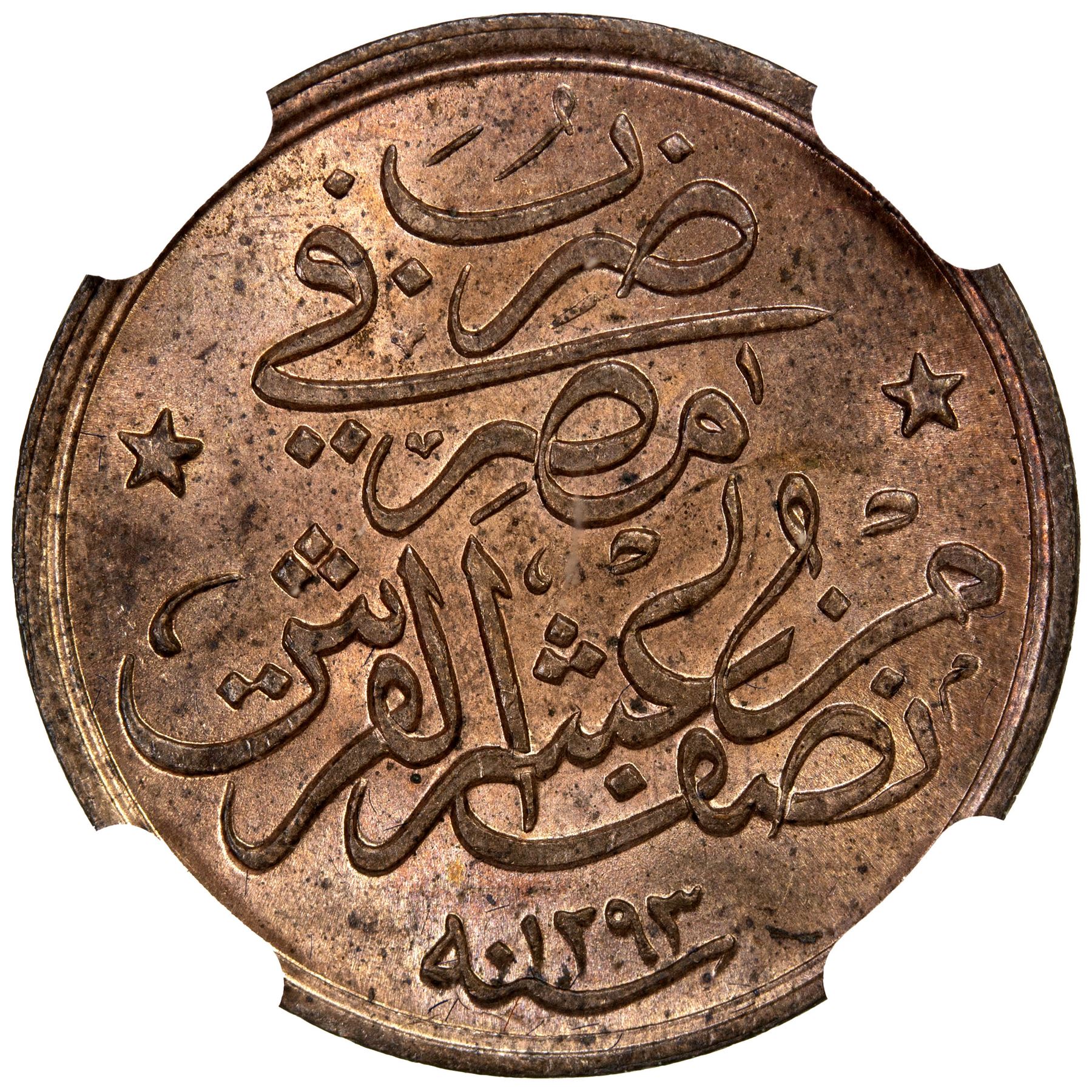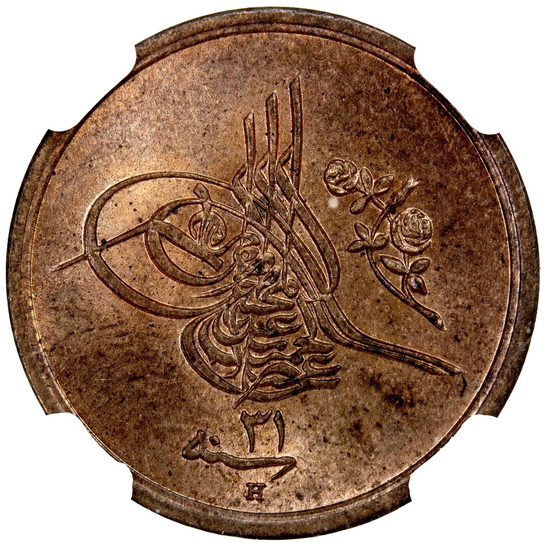 EGYPT: Abdul Hamid II, 1876-1909, AE 1/20 qirsh, AH1293 year 31-H, KM-288, mostly red, NGC graded MS64 RB.