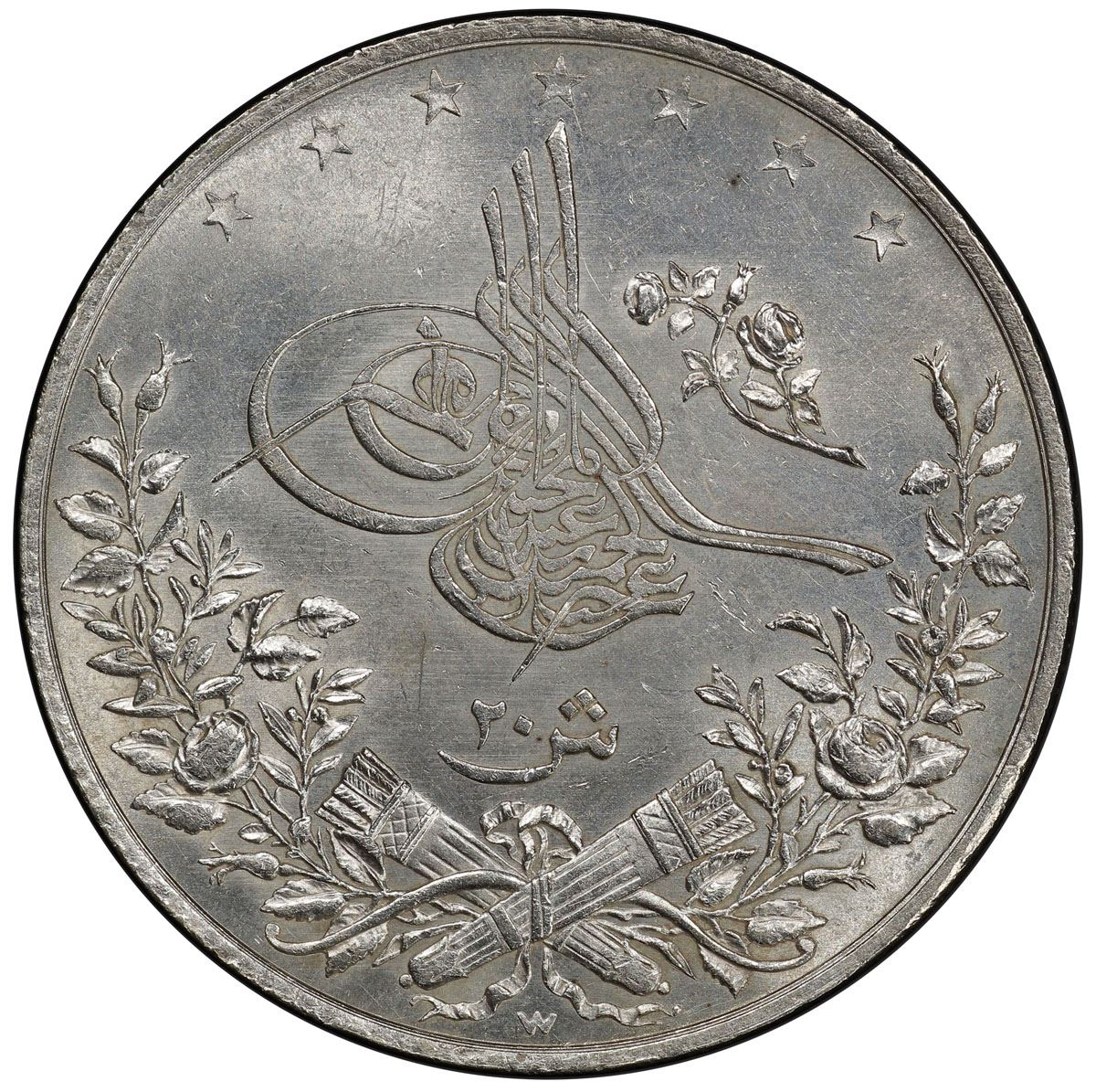 EGYPT: Abdul Hamid II, 1876-1909, AR 20 qirsh, Misr, AH1293-W year 10. PCGS MS62