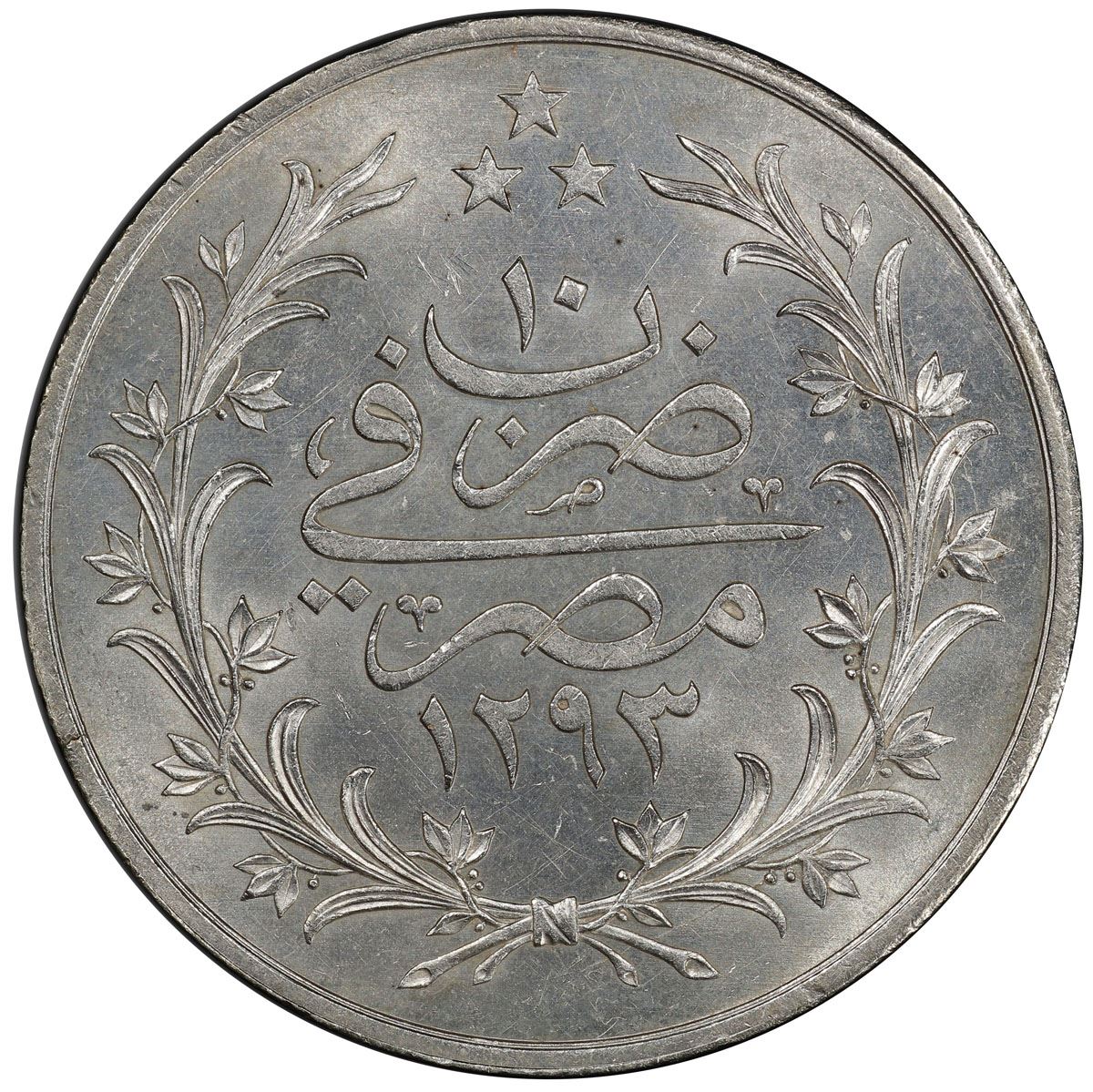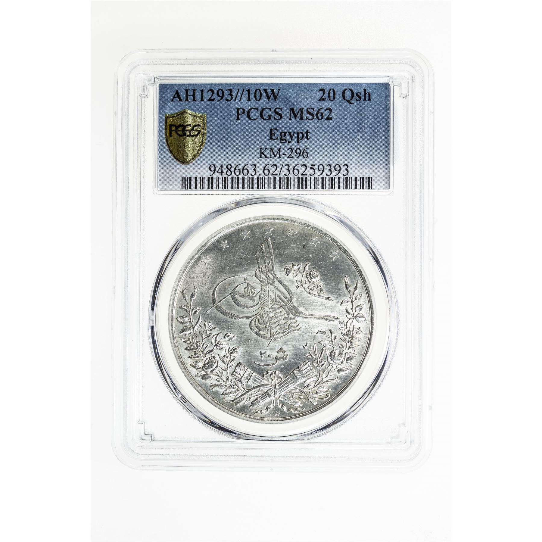 EGYPT: Abdul Hamid II, 1876-1909, AR 20 qirsh, Misr, AH1293-W year 10, KM-296, PCGS graded MS62.
