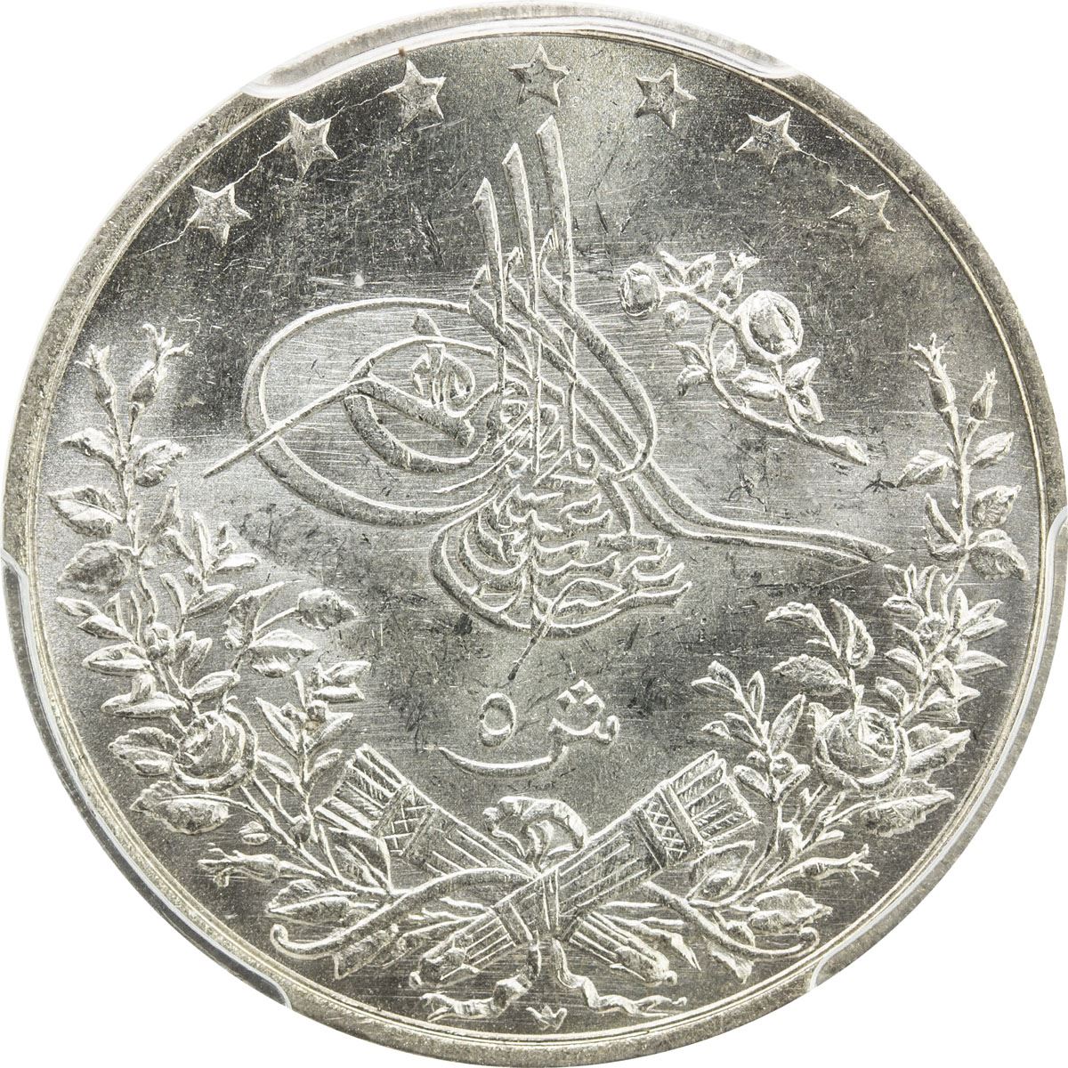 EGYPT: Abdul Hamid II, 1876-1909, AR 5 qirsh, Misr, AH1293 year 27. PCGS MS63