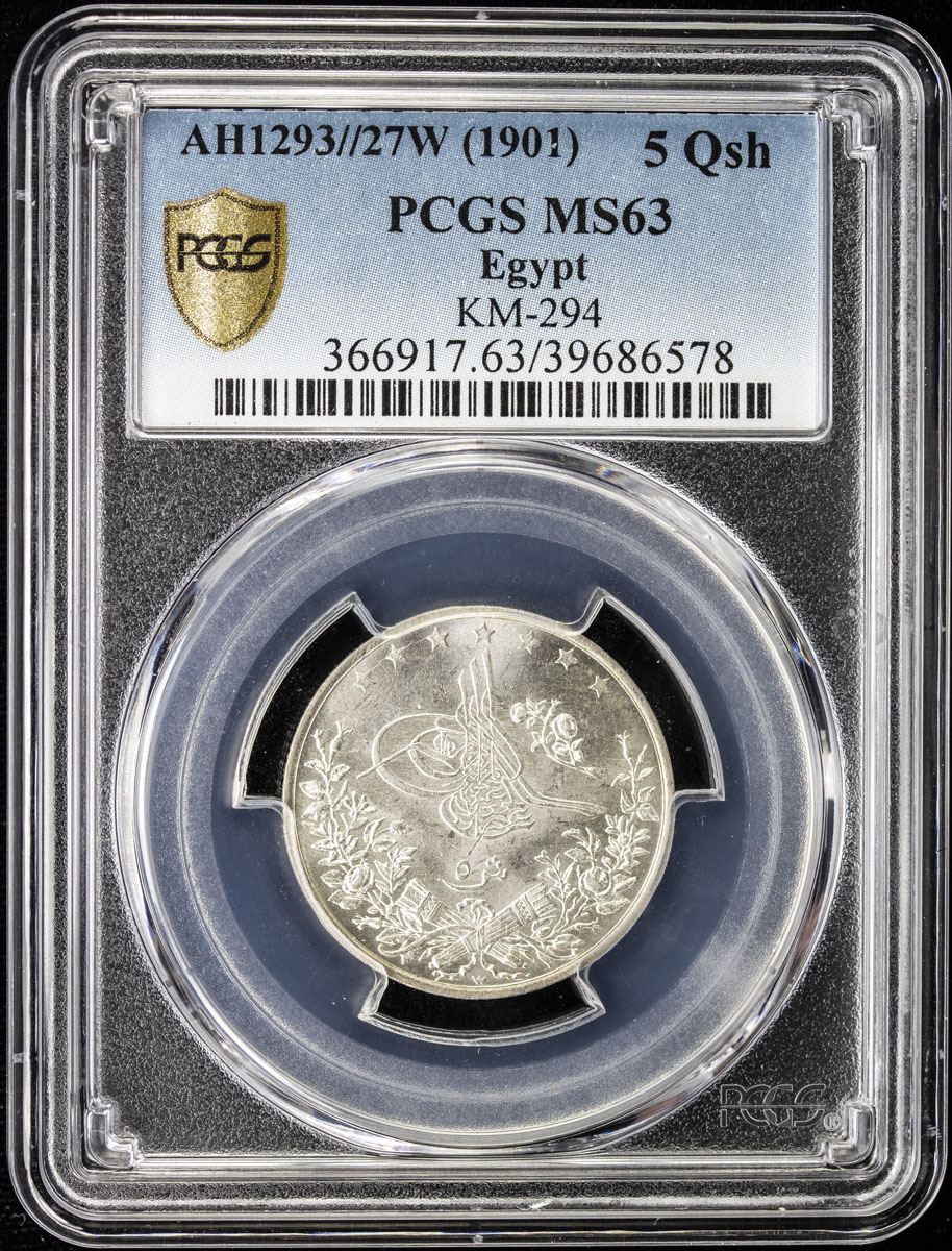 EGYPT: Abdul Hamid II, 1876-1909, AR 5 qirsh, Misr, AH1293 year 27, KM-294, PCGS graded MS63.