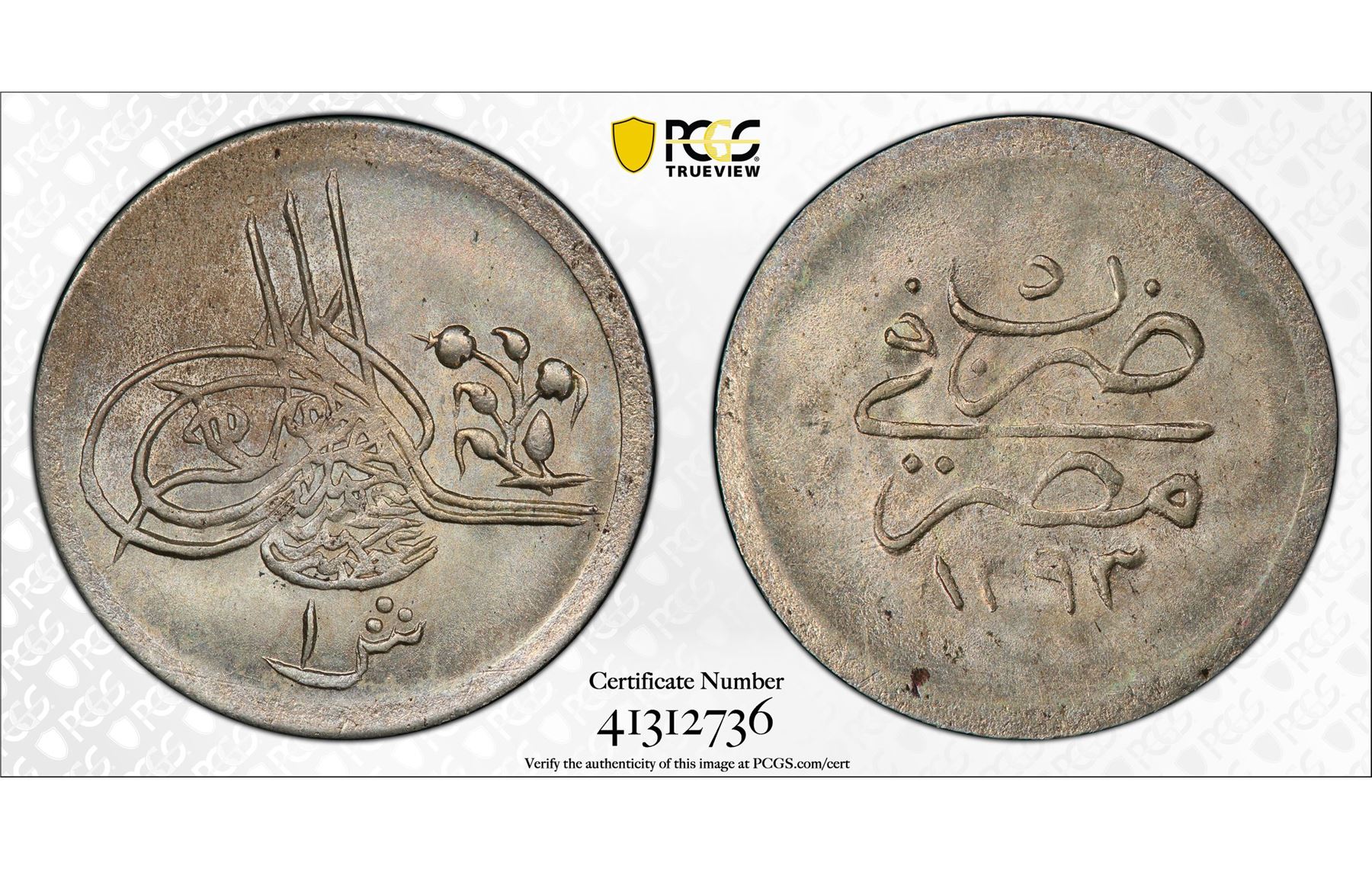 EGYPT: Abdul Hamid II, 1876-1909, AR qirsh, Misr, AH1293 year 5. PCGS MS64
