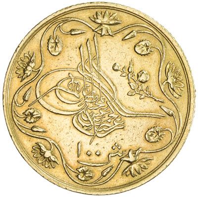 EGYPT: Abdul Hamid II, 1876-1909, AV 100 qirsh, Misr, AH1293 year 12