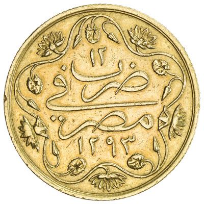 EGYPT: Abdul Hamid II, 1876-1909, AV 100 qirsh, Misr, AH1293 year 12, KM-297, NP-974, struck at the Heaton mint in Birmingham, choice EF.