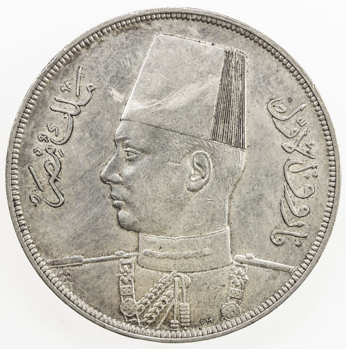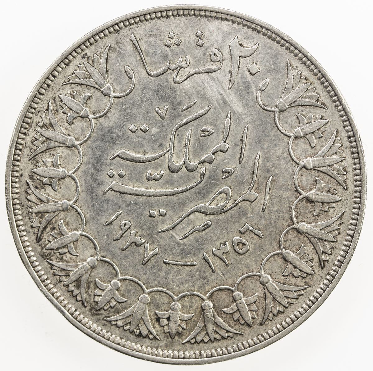 EGYPT: Farouk I, 1936-1952, AR 20 piastres, 1937/AH1356, KM-368, a few marks, light hairlines, EF.