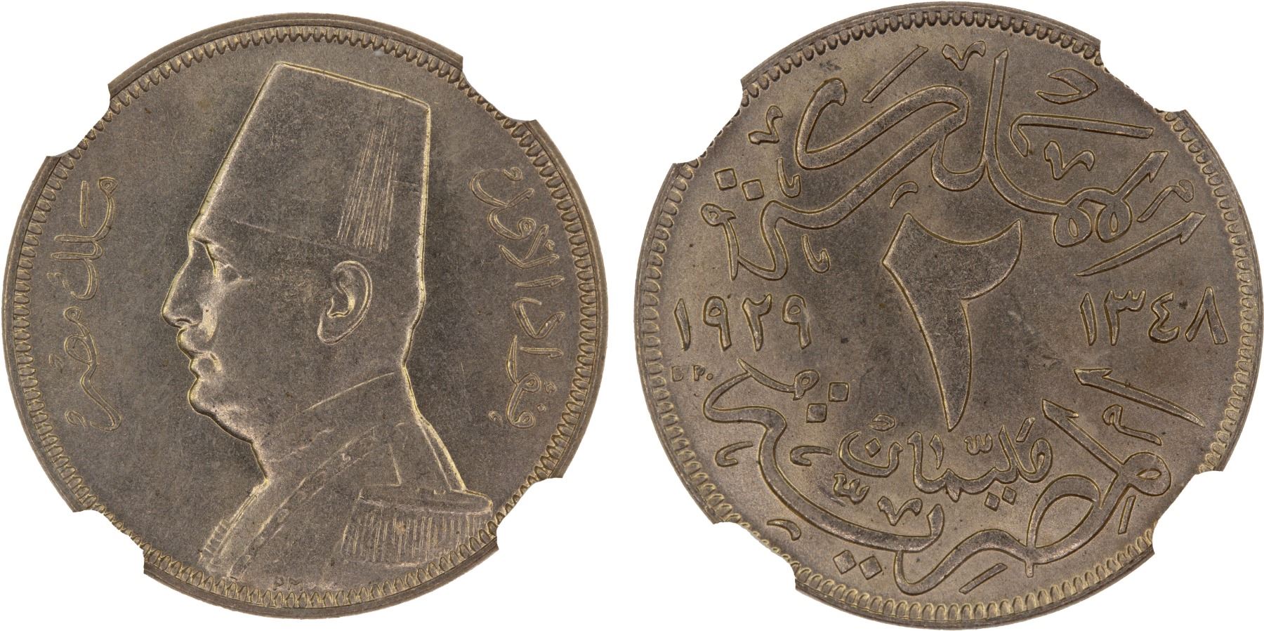 EGYPT: Fuad I, King, 1922-1936, 2 milliemes, 1929-BP/AH1348, NGC MS64