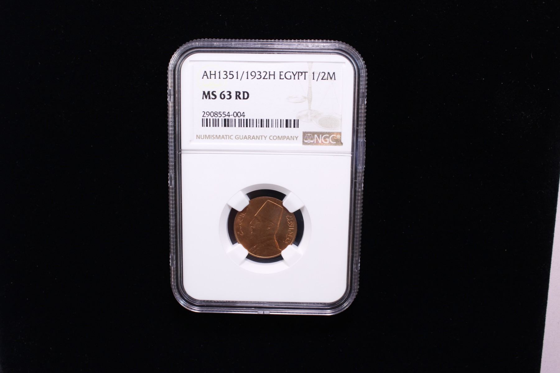 EGYPT: Fuad I, King, 1922-1936, AE 1/2 millieme, 1932-H/AH1351, KM-343, struck at the Heaton mint, Birmingham, a lovely red lustrous example! NGC graded MS63 RD.