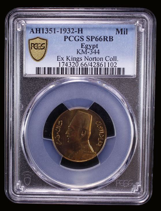 EGYPT: Fuad I, King, 1922-1936, AE millieme, 1932/AH1351, KM-344, Heaton Mint specimen issue struck at the Kings Norton Metal Company, a fantastic quality example! PCGS graded Specimen 66 RB, ex King's Norton Mint Collection.