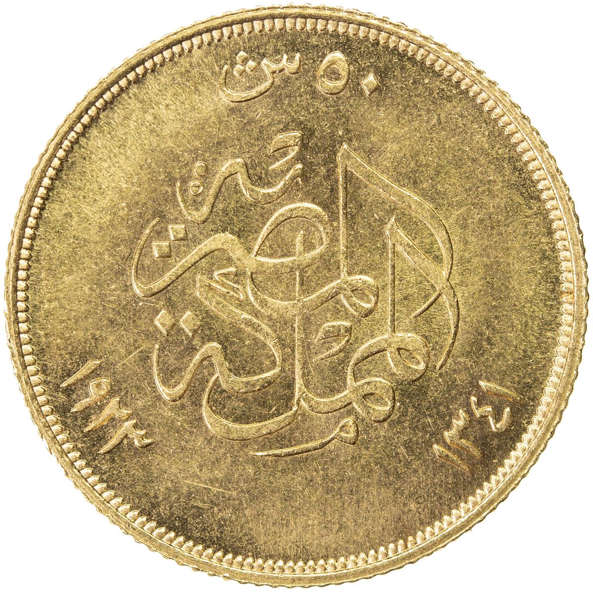 EGYPT: Fuad, as King, 1922-1936, AV 50 piastres, 1923/AH1341, KM-340, struck at the British Royal Mint, Unc, ex Gamal Amer Collection.