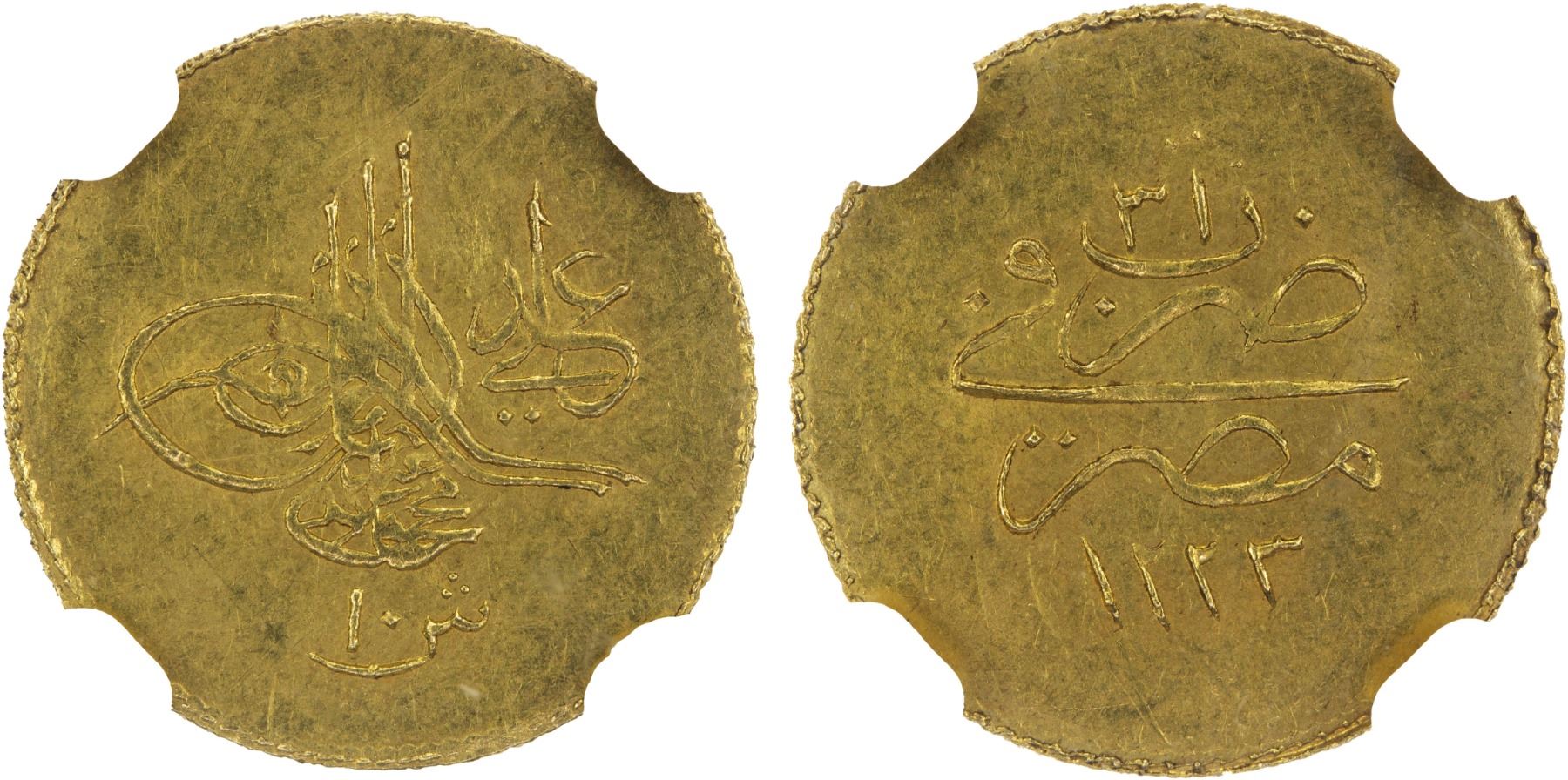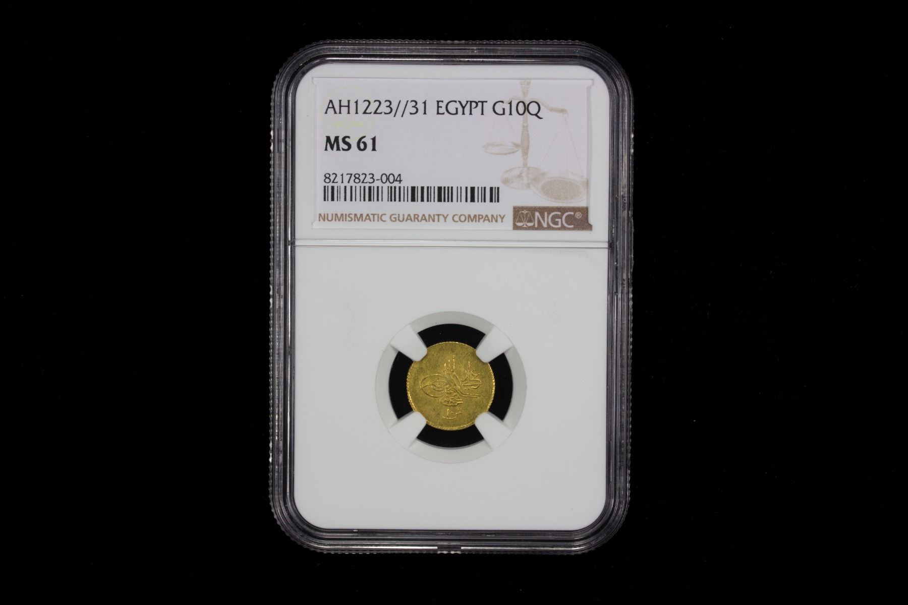 EGYPT: Mahmud II, 1808-1839, AV 10 qirsh, Misr, AH1223 year 31, KM-214, a lovely mint state example, NGC graded MS61.