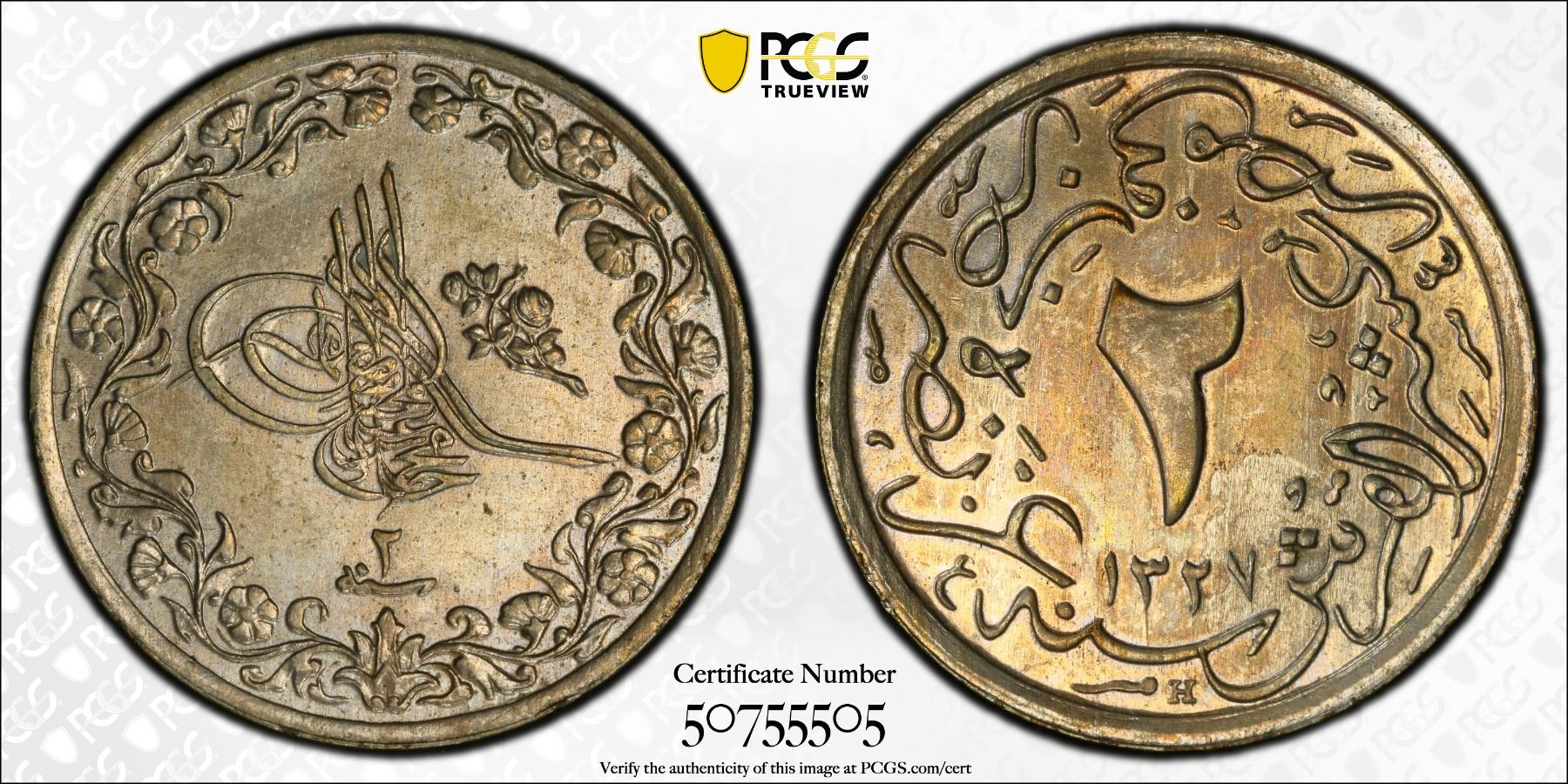 EGYPT: Mehmet V, 1909-1914, 2/10 qirsh, Misr, AH1327 year 2 (1910), PCGS MS63