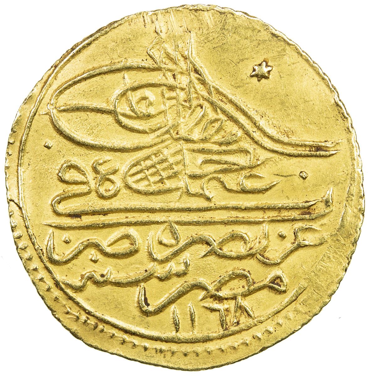 EGYPT: Osman III, 1754-1757, AV zeri mahbub (2.55g), Misr, AH1168, KM-97, UBK-17.02, initial #12 on obverse, #8 on reverse, bold strike, choice EF, ex Gamal Amer Collection, ex Islamic Coin Auction 5, Lot 291.