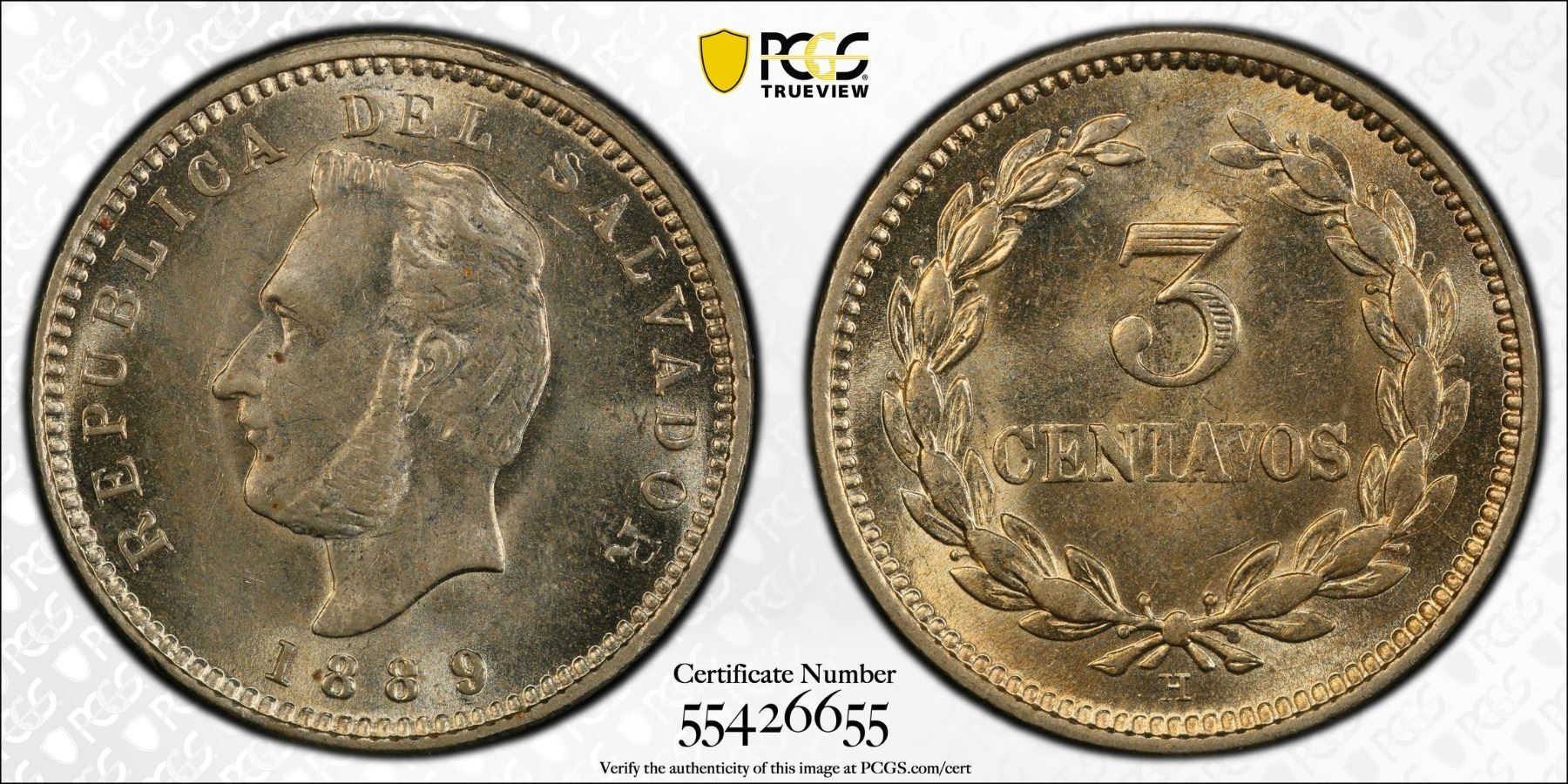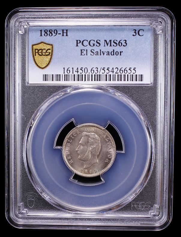 EL SALVADOR: Republic, 3 centavos, 1889-H, PCGS MS63