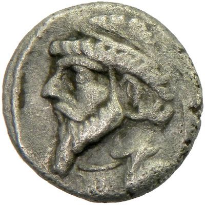 ELYMAIS: Kamnaskires V, ca. 63-54 BC, BI drachm (3.54g), van't Haaff-9.2.2.2.var, bust left / bust left, thoroughly blundered Greek legend around, year perhaps Sel-267, but unclear, VF.