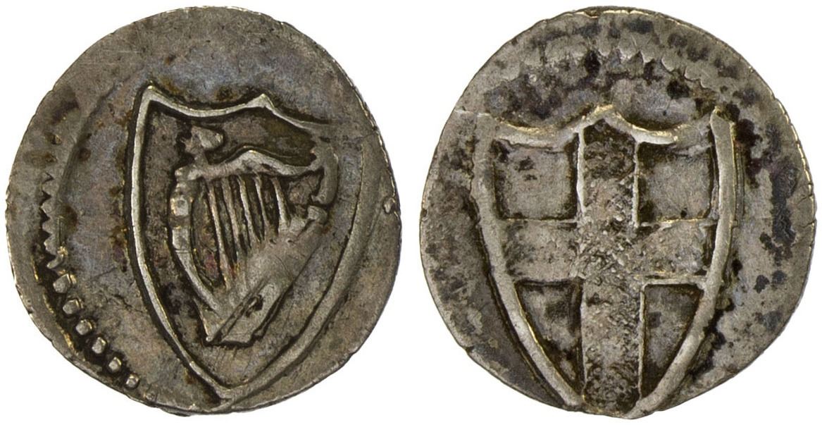 ENGLAND: Commonwealth and Protectorate, AR halfpenny (0.23g), Tower Mint, ND, S-3223, N-2730, English arms // Irish arms, Choice VF.