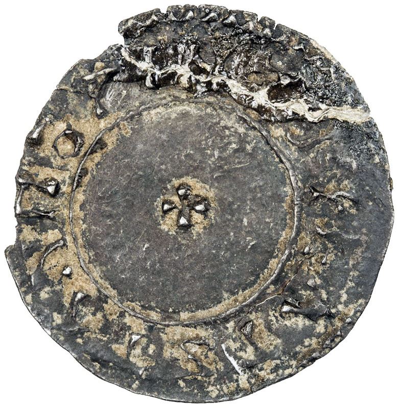 ENGLAND: Edgar, 959-975, AR penny (1.55g), cf. H-48, diademed and draped bust left within linear circle +EADGAR REX ANGLORX // small cross pattée, linear circle surrounding, +EATSTAN MO PINTO, broken and repaired, VF, ex Glendining's, October 6, 1987.