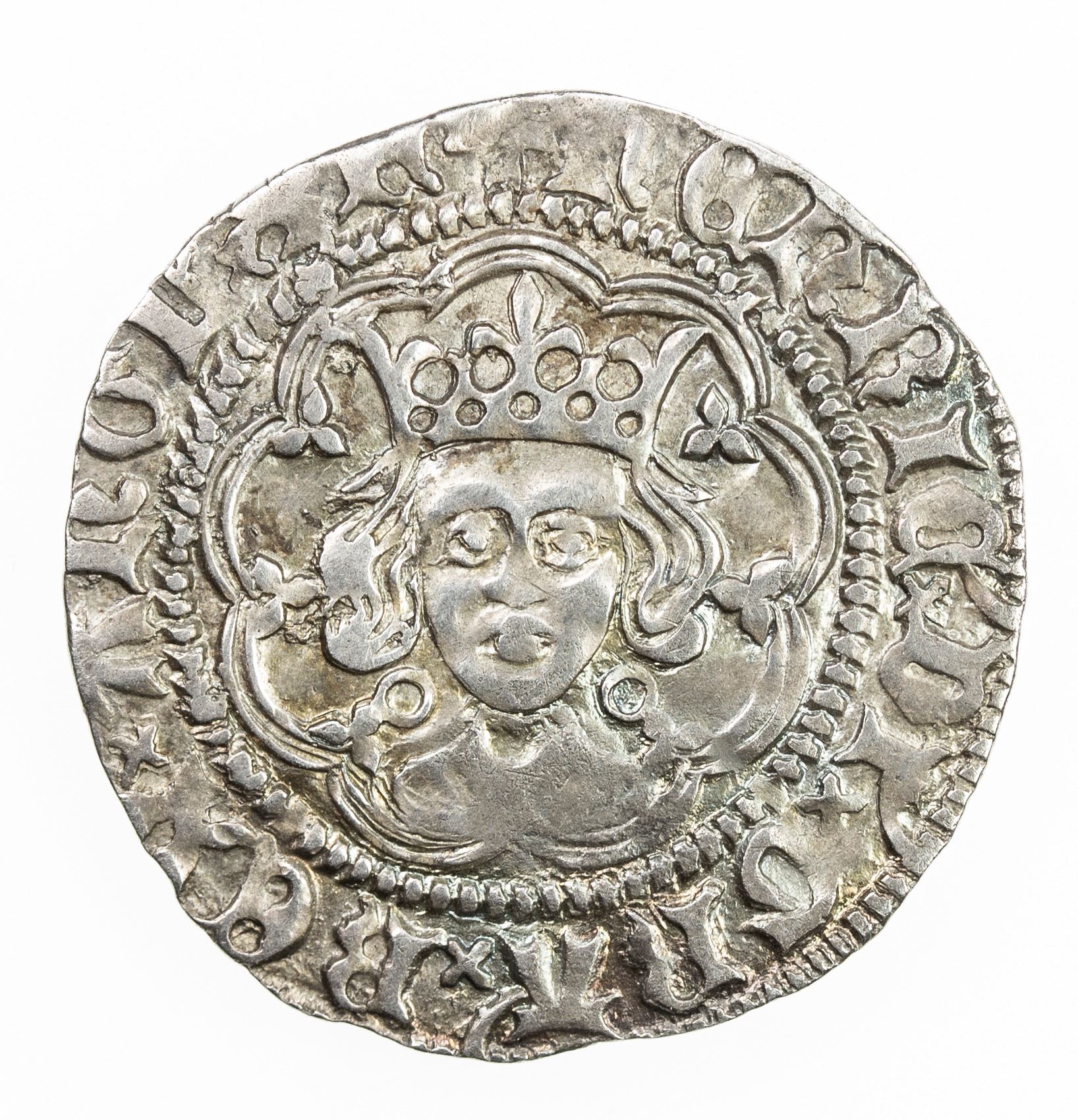 ENGLAND: Henry VI, 1422-1461, AR halfgroat (1.91g), ND (1422-30), Spink 1840, North 1429, Annulet issue, mintmark plain cross, Calais Mint, variety with 9 arches, attractive toning, VF to EF, ex Reigate Hoard.