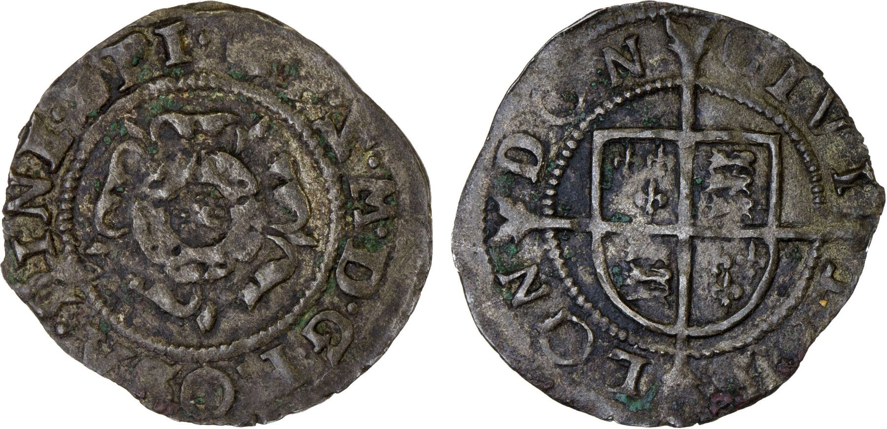 ENGLAND: Philip & Mary, 1554-1558, BI penny (0.49g), Tower Mint, S-2510A, N-1976, halved rose-and-castle mintmark, rose // arms over long cross fourchée, decent strike, accompanied by roundel, Choice VF.