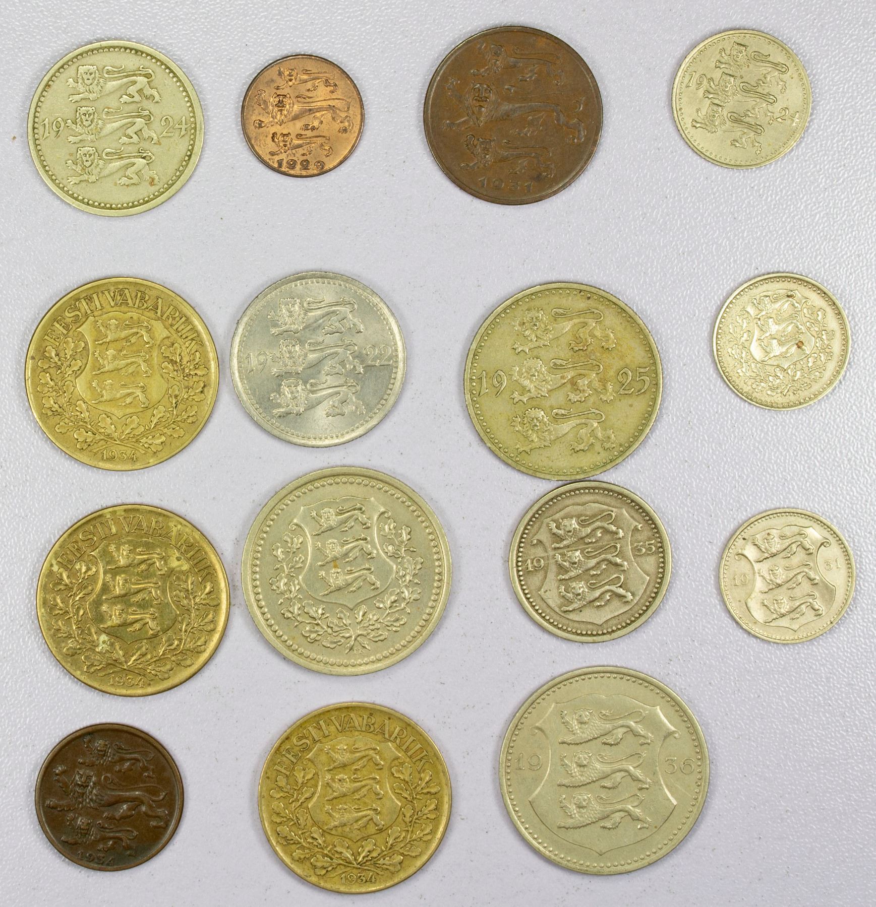 ESTONIA: LOT of 15 coins, including several interesting and scarce types, from AU to BU; retail value $250, lot of 15 pieces, ex Robert A. Rosenfeld Collection.