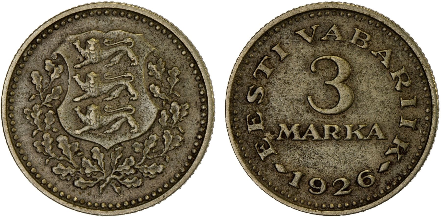 ESTONIA: Republic, 5 marka, 1926, KM-6, scarce type, XF.