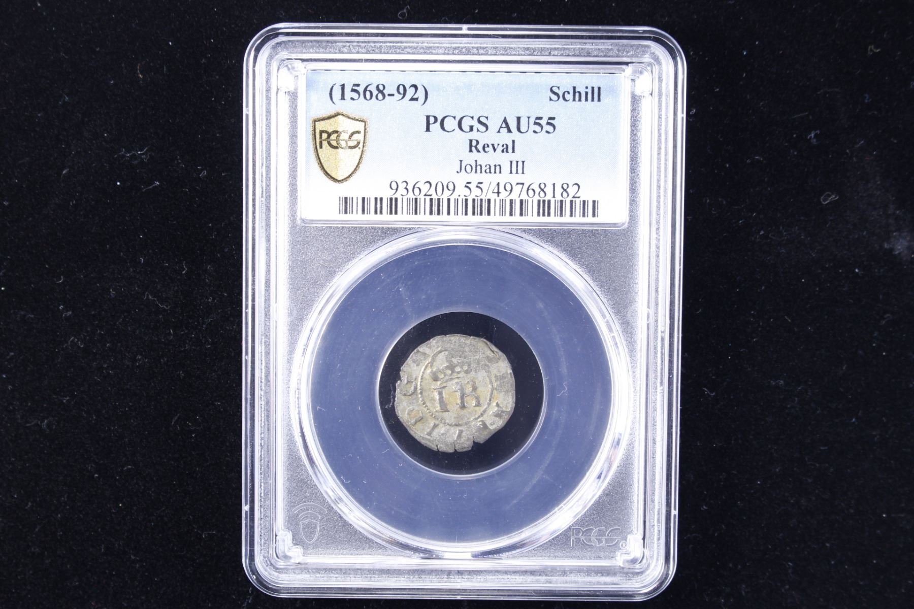 ESTONIA (SWEDISH): Johan III, 1569-1592, AR shilling, Reval, ND (1568-1592), PCGS graded AU55