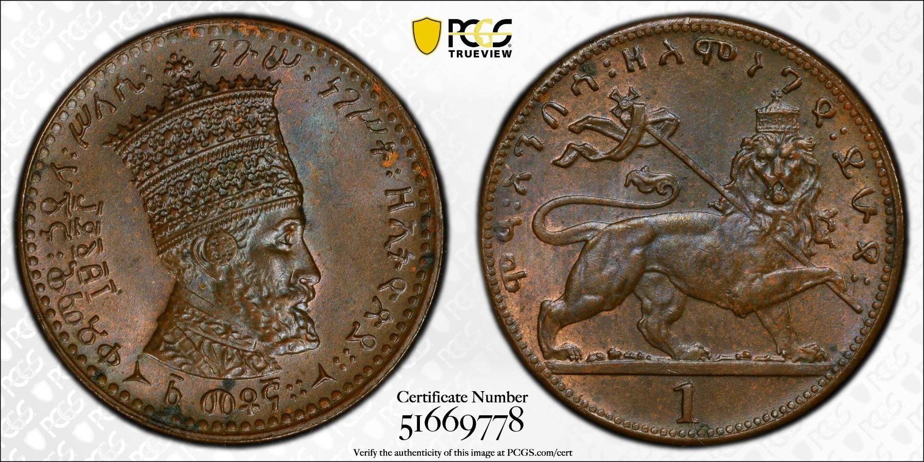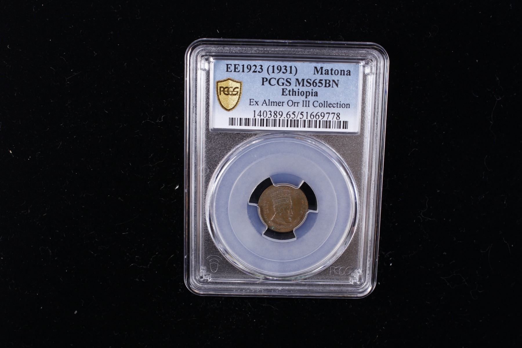 ETHIOPIA: Haile Selassie, 1930-1974, AE matona, EE1923 (1931), KM-27, Y-23, struck at the Kings Norton Mint, Birmingham, a superb lustrous example! PCGS graded MS65 BN, ex Almer H. Orr III Collection.