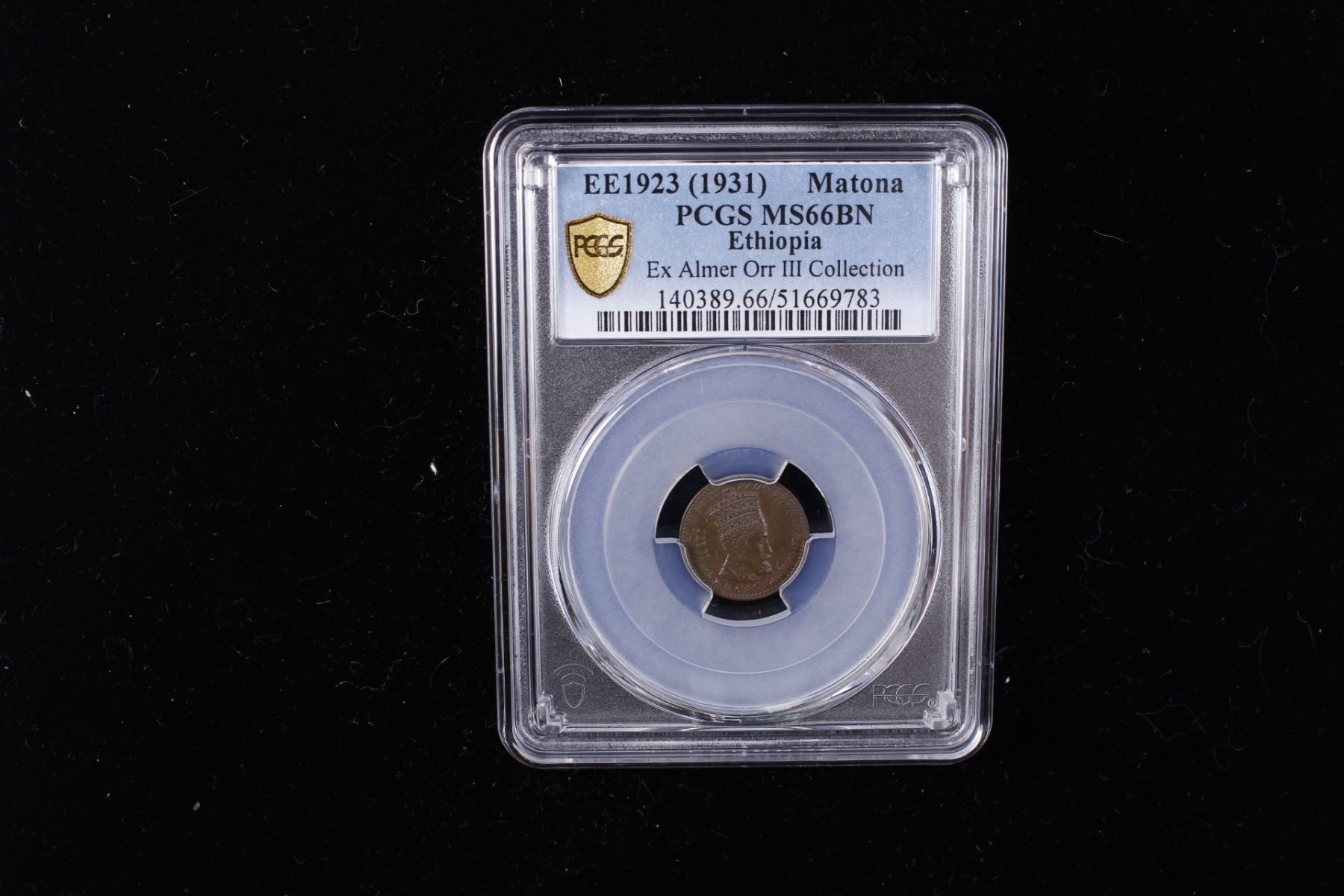 ETHIOPIA: Haile Selassie, 1930-1974, AE matona, EE1923 (1931), KM-27, Y-23, struck at the Kings Norton Mint, Birmingham, a fantastic lustrous example! PCGS graded MS66 BN, ex Almer H. Orr III Collection.