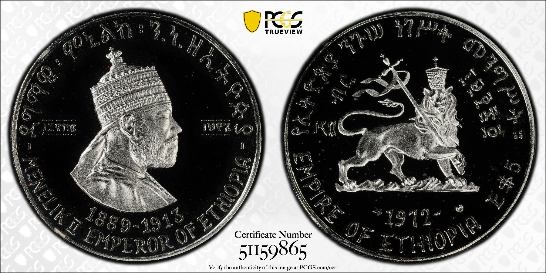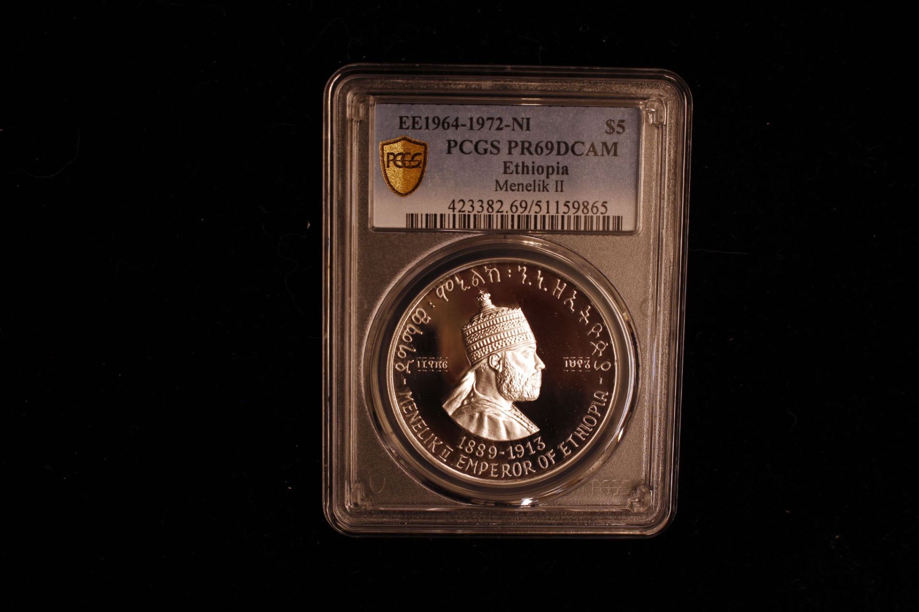 ETHIOPIA: Haile Selassie I, 1930-1974, AR 5 dollars, EE1964 (1972), KM-50, Emperor Menelik II, an extraordinary example, PCGS graded PF69 Deep Cameo.