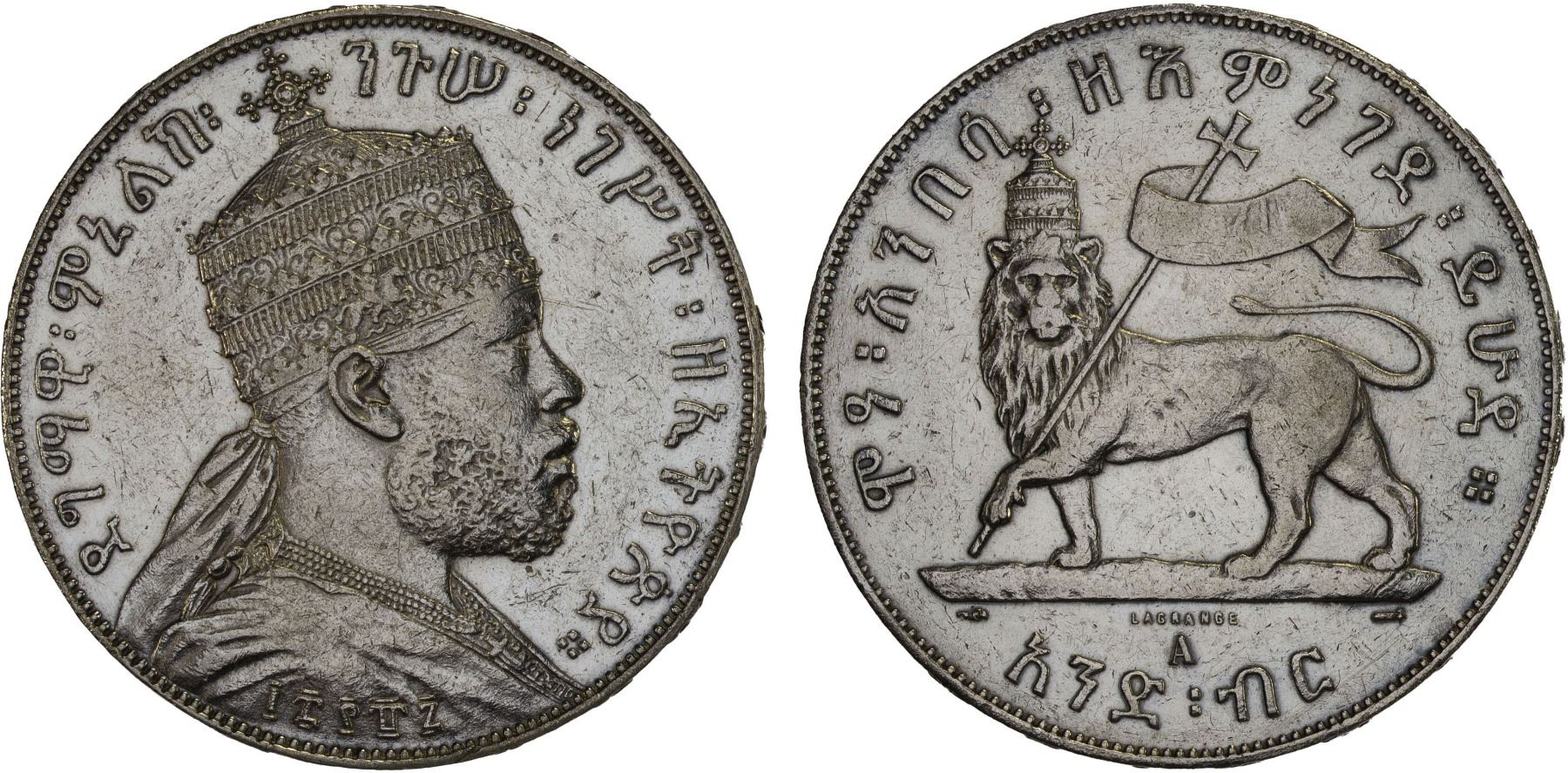 ETHIOPIA: Menelik II, 1889-1913, AR birr, EE1887 (1895), XF