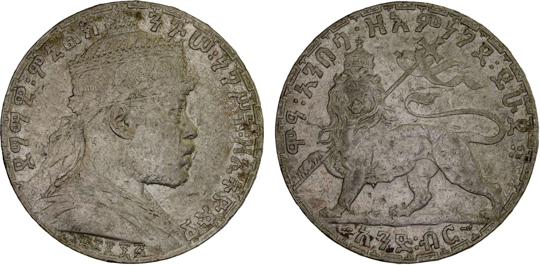 ETHIOPIA: Menelik II, 1889-1913, AR birr, EE1895 (1902-03), VF-XF