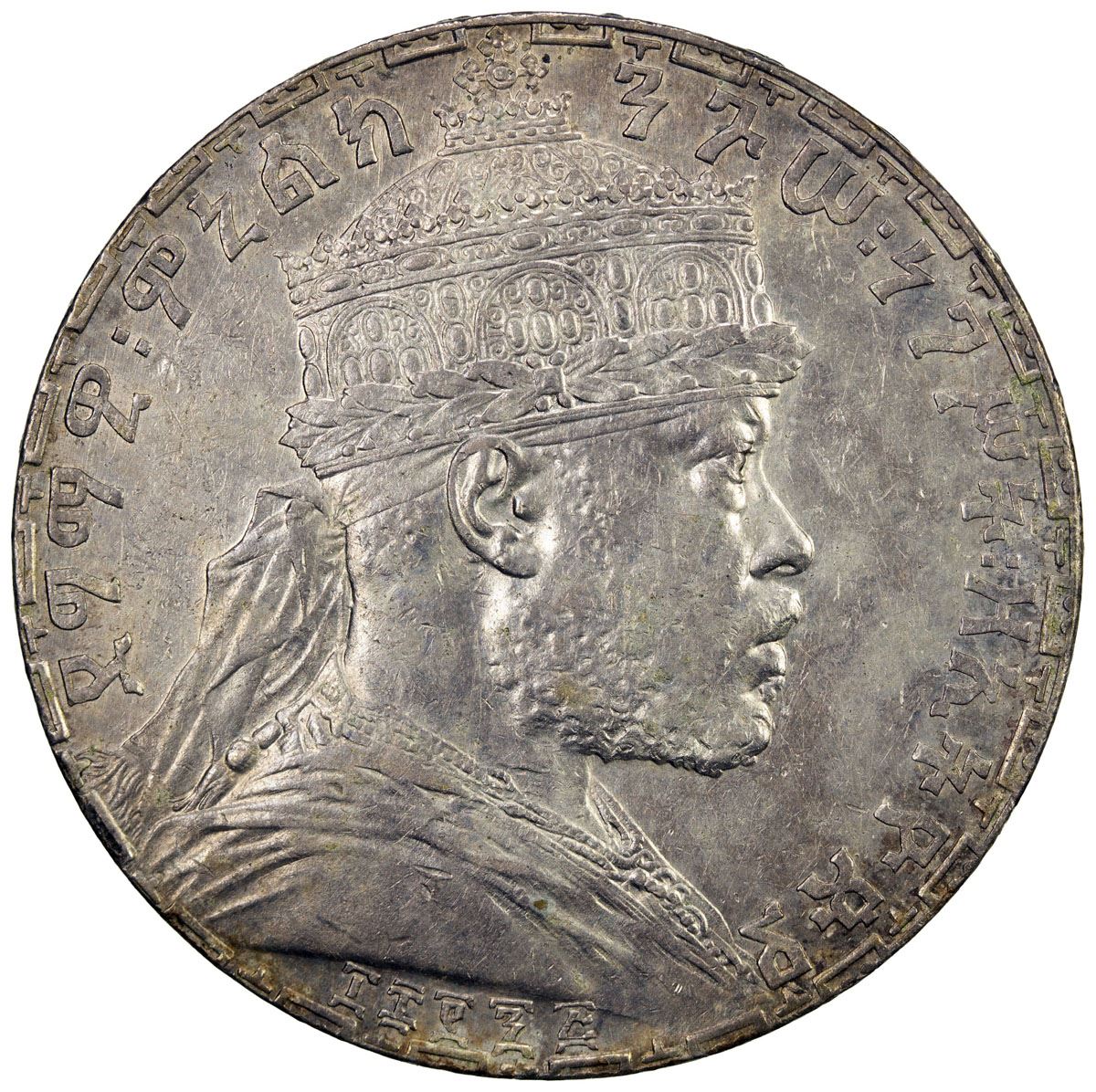 ETHIOPIA: Menelik II, 1889-1913, AR birr, EE1895 (1903), KM-19, some original luster, EF.