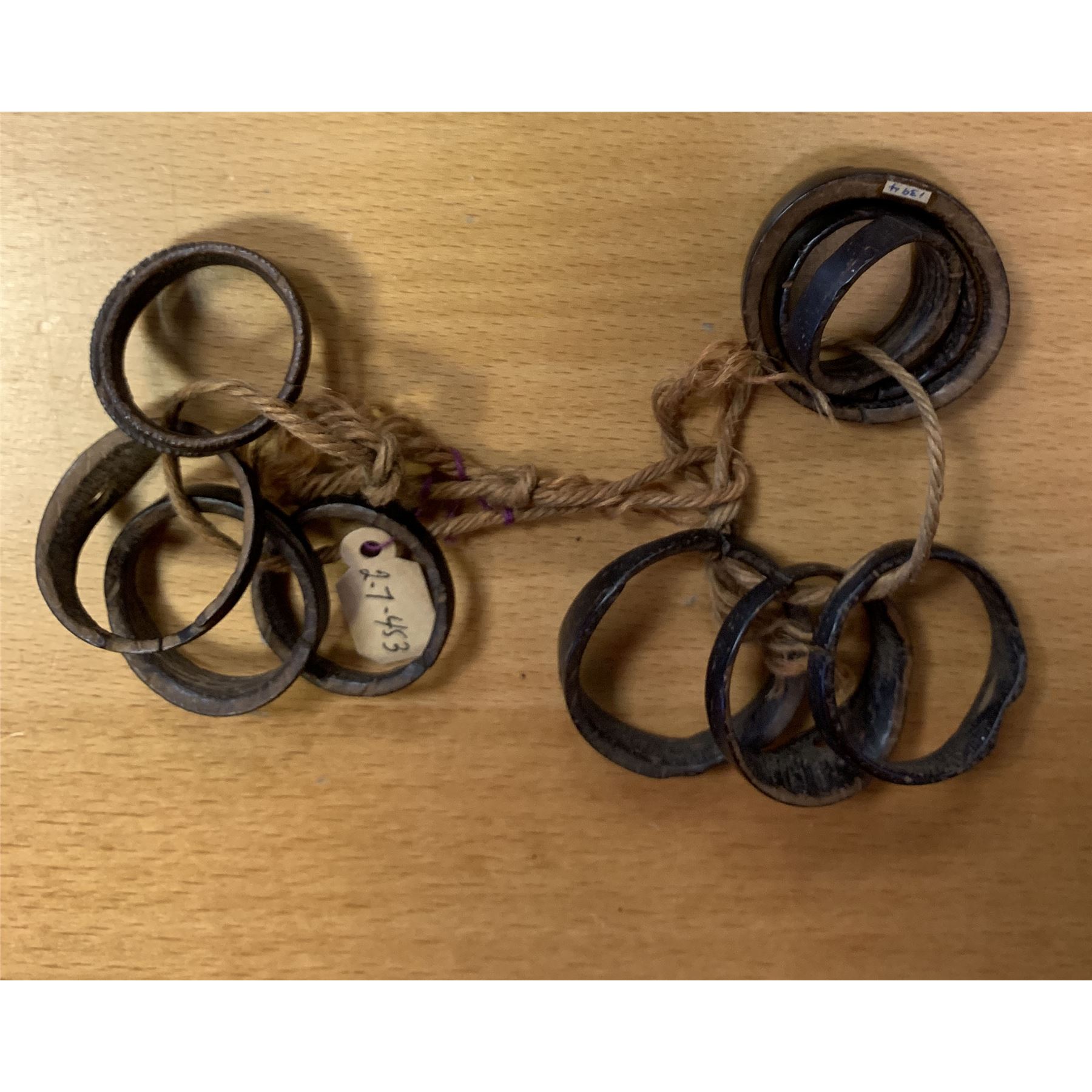 ETHNOGRAPHIC: PACIFIC: SOLOMON ISLANDS: turtle shell rings, Opitz p.360, consisting of 11 rings strung on woven plant fiber, used as money on many Pacific islands, VF, ex Charles Opitz Collection. Deacquisition from the Money Museum of Detroit.