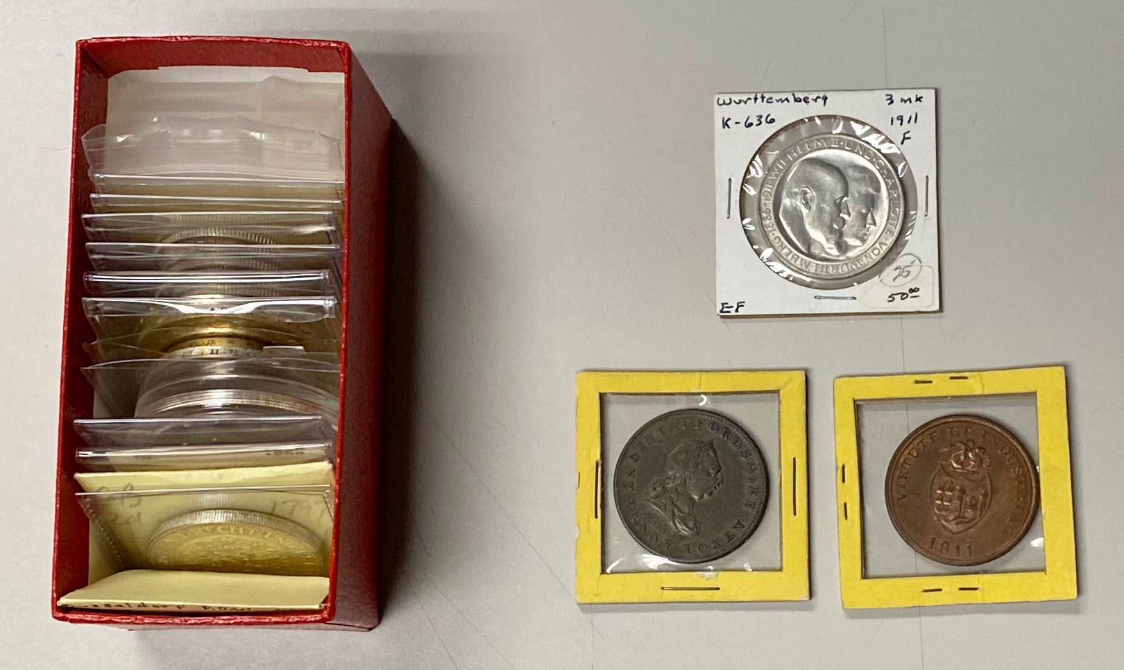EUROPE: LOT of 29 coins and tokens, including Germany/Dusseldorf (1 pc, P.O.W. token), German States/Württemberg (1), Germany/Weimar Republic (1), Great Britain (9, including 2 tokens), Hungary (10), Italy (2), and Liechtenstein (5); generally better than average circulated grades, with some uncs and proofs, in consignor's holders, viewing recommended; retail value $1050, lot of 29 pieces.