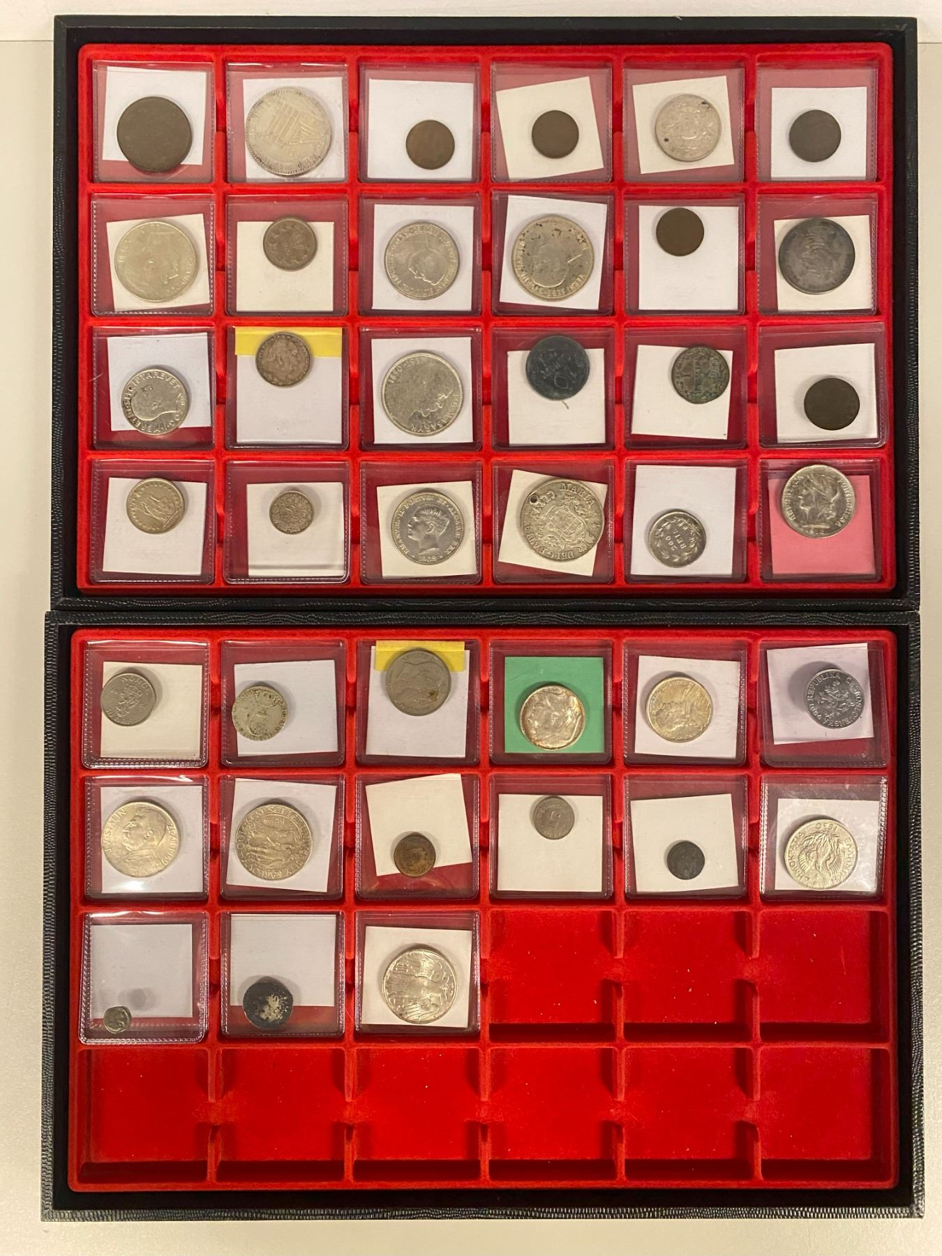 EUROPE: LOT of 39 coins, including a Belgium 50 francs 1935 Railroad issue, an AU Greece 10 lepta a882-A, a Norway 1898 2 Kroner. an Albania 2 fraga ari 1935, a Montenegro 1912 perper, and 34 others - a nice collection of a wide variety; retail value $900, lot of 39 pieces.
