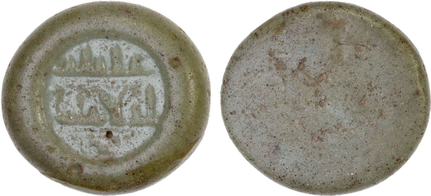 FATIMID/EARLY AYYUBID: Contemporary imitation, 12th century, glass weight (jeton) (5.79g), XF
