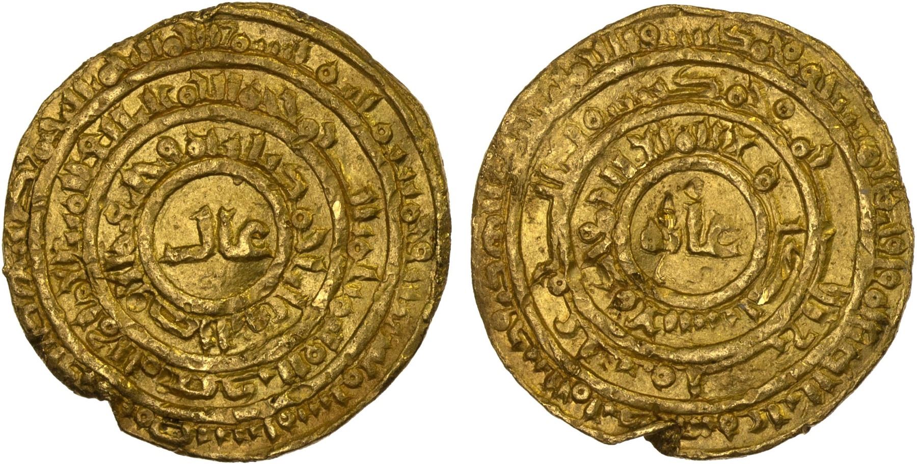 FATIMID: Interregnum, 1130-1131, AV dinar (4.24g), Misr, AH526, A-734.2, Nicol-2592 (type B), in the name of the hidden imam al-Mahdi, with the title al-Qa'im bi-amr Allah in the obverse middle margin (without the phrase al-muntazar), also citing the vizier and de facto ruler Kutayfat as al-Afdal Abu 'Ali Ahmad followed by the title na'ibuhu wa-khalifatuhu ("his representative and his follower") in the inner margin, with the phrase 'âl / ghâya ("extremely pure", reference to the gold quality) divided between the obverse and reverse centers; issued for less than a month in AH526 (from the start of Muharram on November 24 to his assassination on December 8) and much rarer than the type A dinar; small cut on edge, VF, RRR, ex SINCONA Auction 92, Lot 820. Nicol only records 3 museum pieces of this type. This is the only example to appear in public auctions to our knowledge.This coin was issued during the brief but tumultuous period between the assassination of al-Âmir and the controversial succession of his cousin al-Hafiz. When al-Âmir was killed by Nizari agents (i.e. the Order of Assassins) in October 1130, he left behind a six-month-old son, al-Tayyib, without a vizier or regent. As the oldest surviving male of the dynasty, al-Hafiz (then known as 'Abd al-Majid) assumed the role of the regent and effectively became the head of state. But this was met with opposition from the army, which quickly placed him under arrest and installed Kutayfat (also known as Abu Ali Ahmad ibn al-Afdal) as the new vizier. The infant al-Tayyib had disappeared amid the power struggle and was never heard from again. Kutayfat thus ruled in the name of a hidden imam by the name of Abu'l-Qasim Muhammad al-Muntazar bi-Amr Allah and issued coins in that name. His rule lasted barely over a year when members of al-Âmir's bodyguard assassinated him in early December 1131. Al-Hafiz ascended the throne in the next month, thus bringing an end to the interregnum. However, his succession caused the Ismaili faith--already fractured by the Nizari schism--to further splinter. Those who recognize the legitimacy of al-Hafiz and his successors formed the now-extinct Hafizi sect; those who do not became the extent Tayyibi branch, which believes al-Tayyib went into seclusion (not unlike the final imam in Twelver Shia Islam) and is publicly represented by the Da'i al-Mutlaq ("absolute missionary").