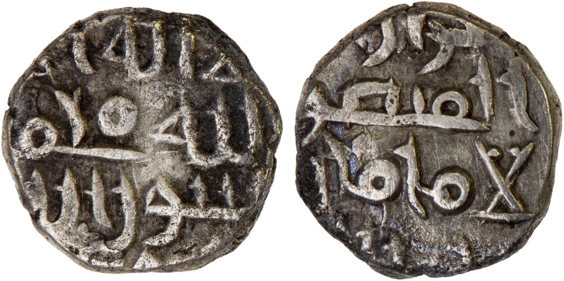 FATIMID PARTISANS AT MULTAN: al-'Aziz, 975-996, AR damma (0.53g), A-4591, Nicol-859, FT-FG2 (ex A-A708), Isma'ili kalima // Isma'ili caliph: caliphal text nizar abu / mansur / al-imam al-az- / -iz billah, bold strike, choice VF-XF, R.