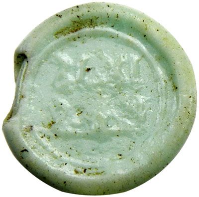 FATIMID: al-Hafiz, 1131-1149, Glass jeton (2.94g), A-737, FGJ-403, al-imam / al-hafiz, opaque pale green, small chip by the edge, Fine to VF, S.