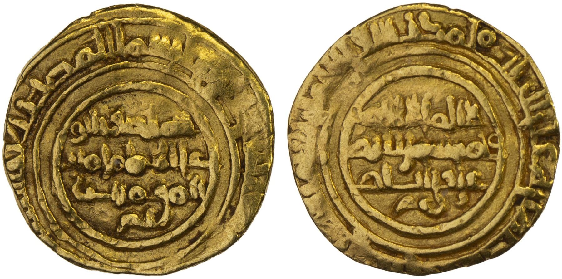 FATIMID: al-Hakim, 996-1021, AV 1/4 dinar (0.98g), MM/NM, DM, A-710, central obverse legend al-mansur abu / 'ali al-imam amir / al-mu'minin with several slightly abbreviated spellings to fit the tiny center, VF.